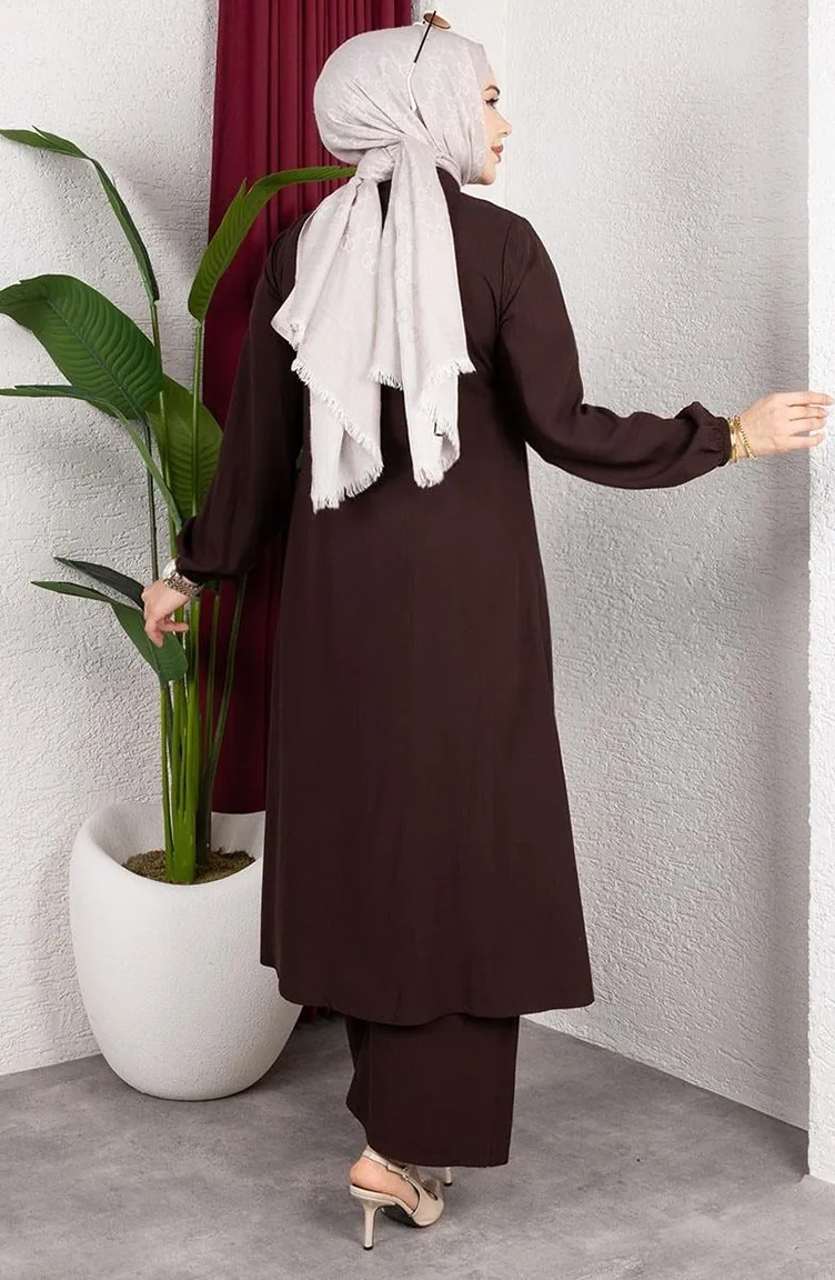 بدلة مزدوجة من قماش فيسكوز بلماندو، بنطلون تونك، 0340-03 بني 0340-03