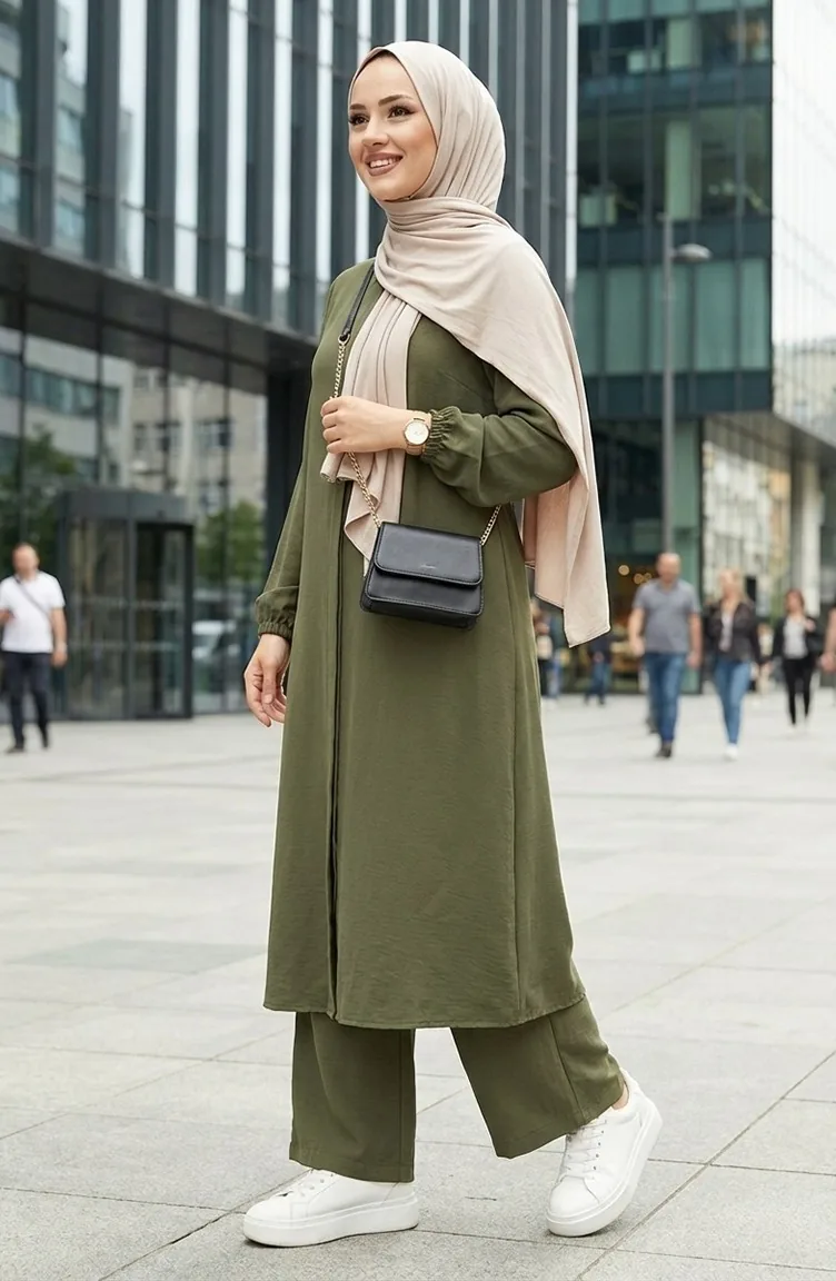 بدلة مزدوجة من قماش فيسكوز بلماندو، بنطلون تونك، 0340-07 كاكي 0340-07