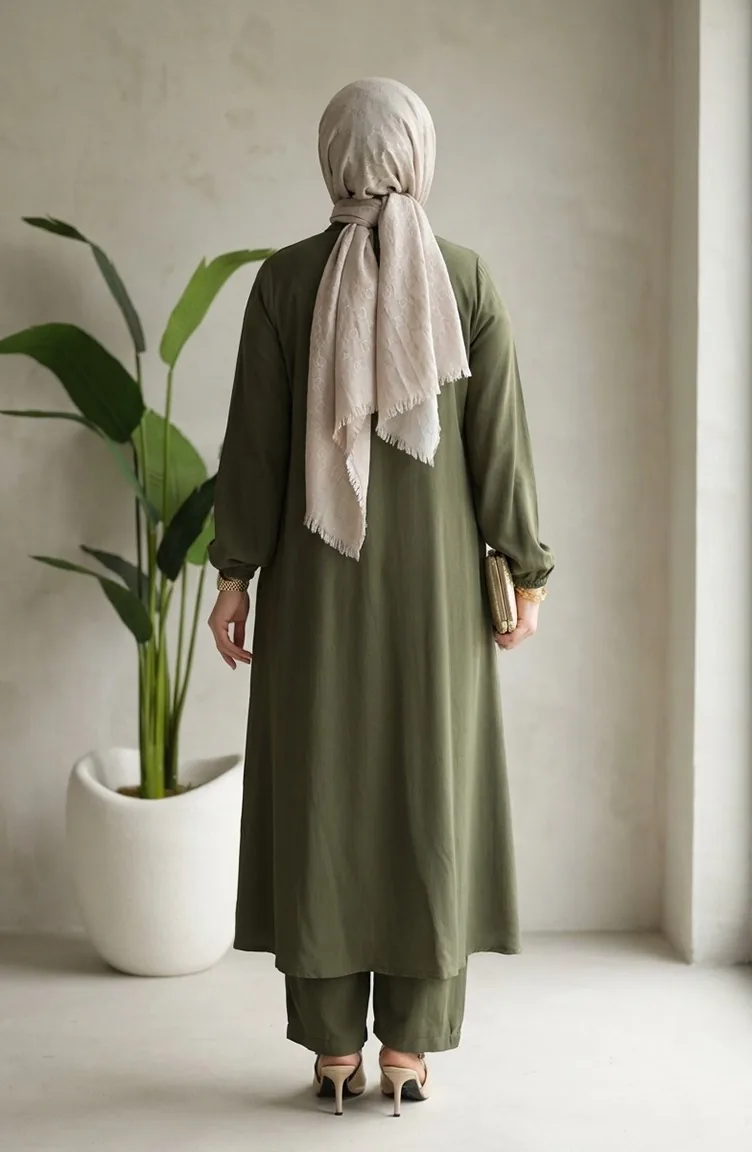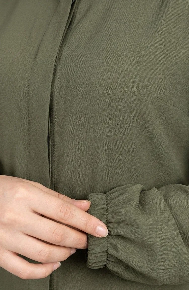 ذو لون الحشيشي. فسكوزي نوع من النسيج الصناعي ومريحة للاستخدام. ذو مظهر سادة. استعملت الأزرار ليجعل المنتج سهولة الارتداء. استخدم الكم البيلاستيك. ياقة القميص تفضل في كثير من الكومبينات. مناسب لجميع المواسم. هناك مقاسات كبيرة.