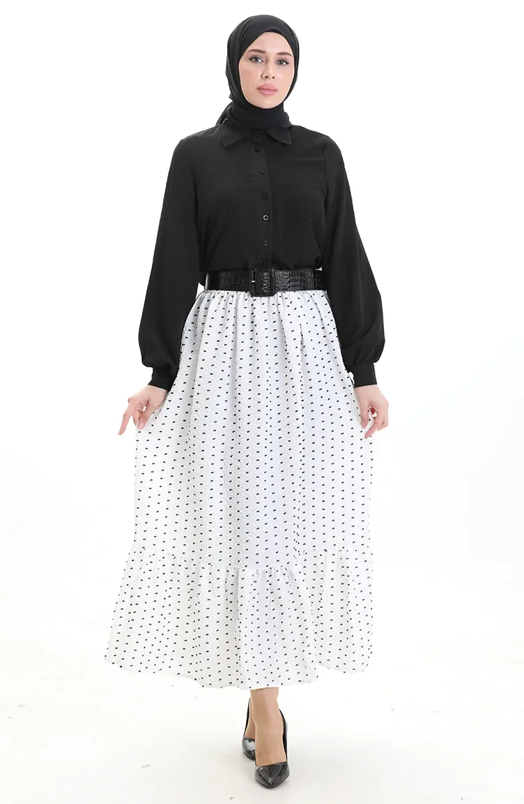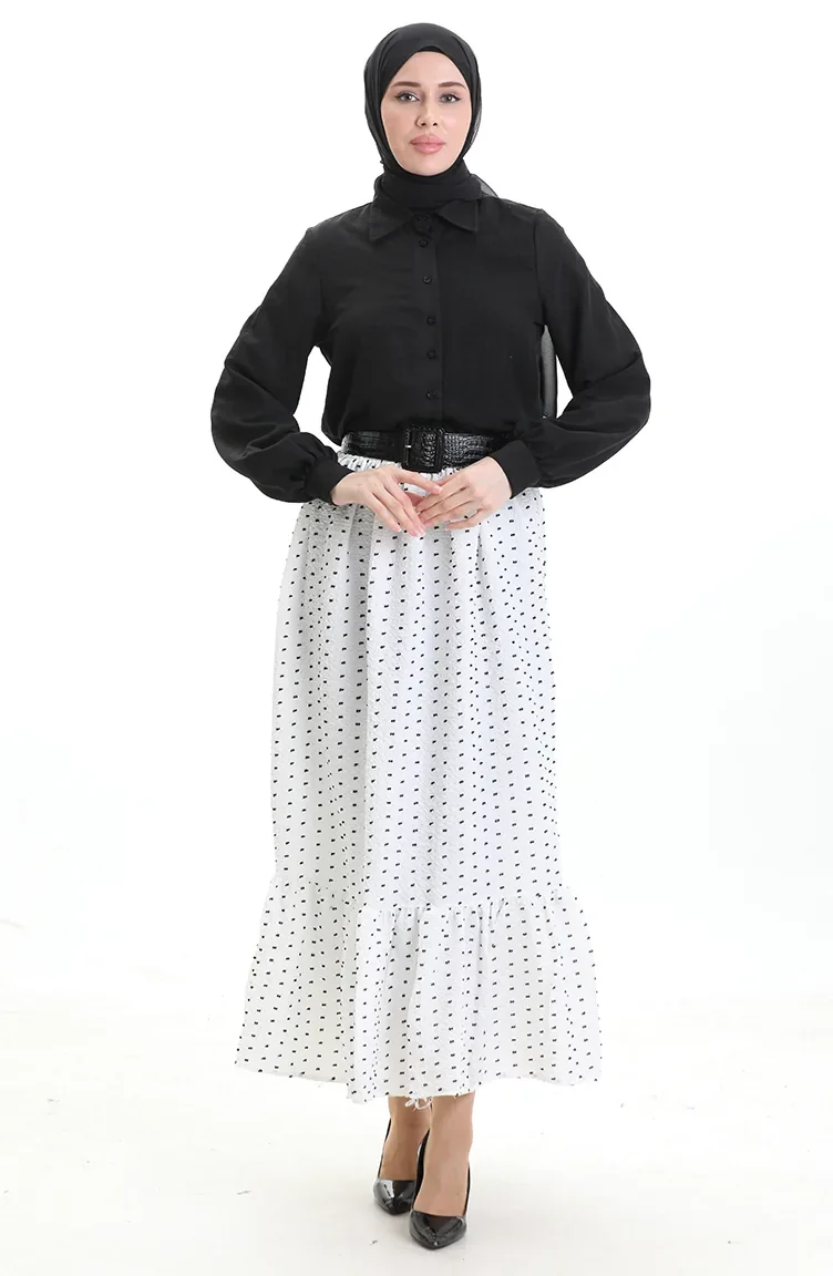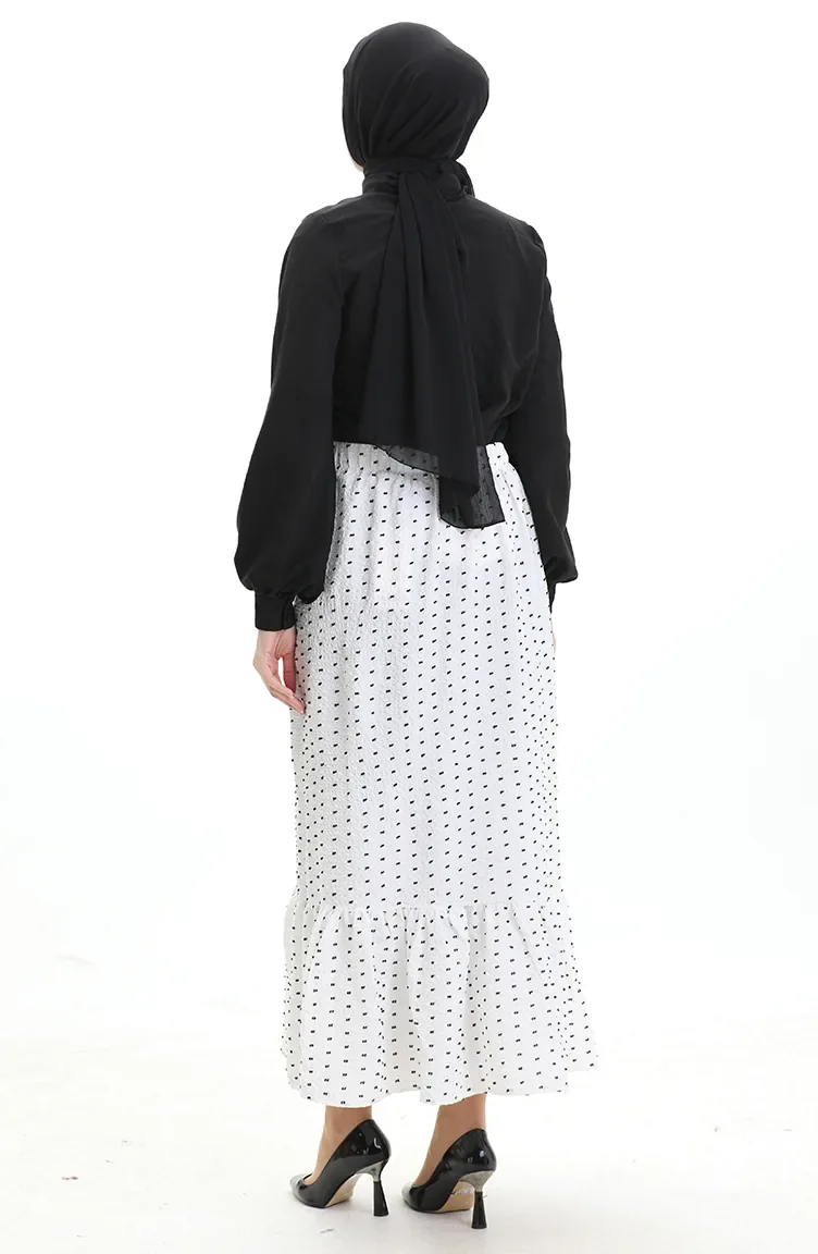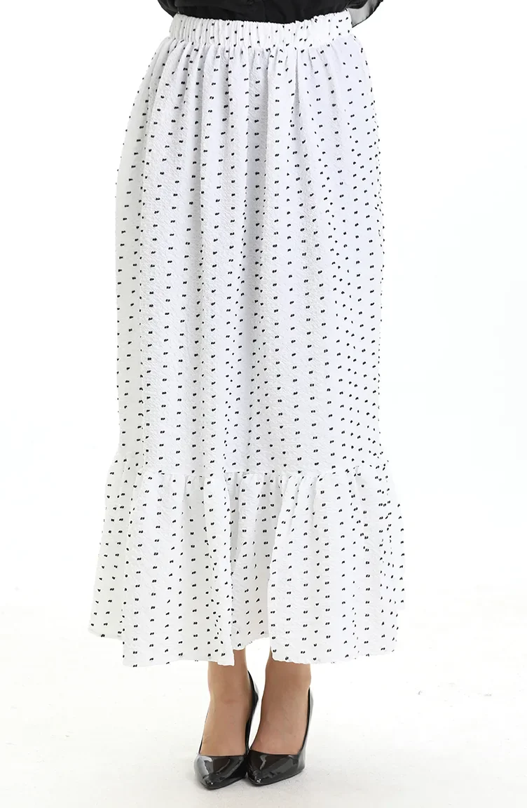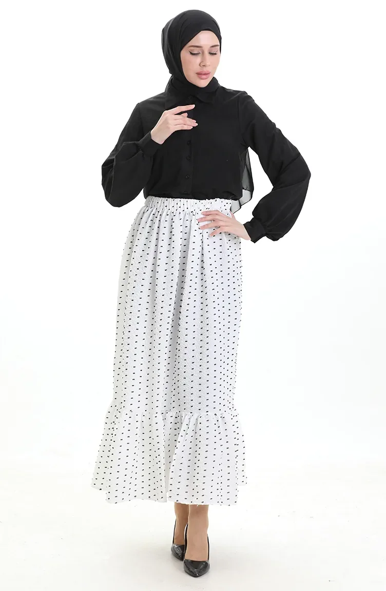 تنورة من قماش الكريب بخصر مرن 2106-01 أبيض 2106-01