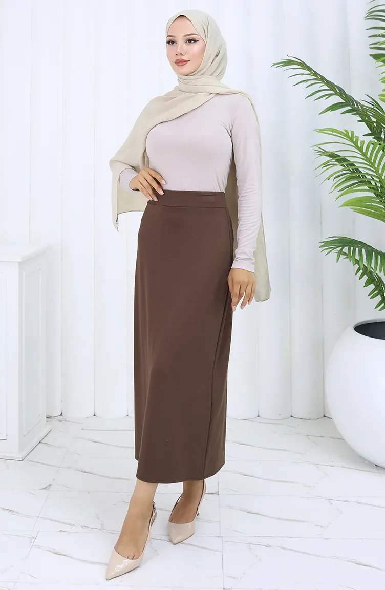 تنورة قلم رصاص بخصر مرن 0001-03 بنية 0001-03