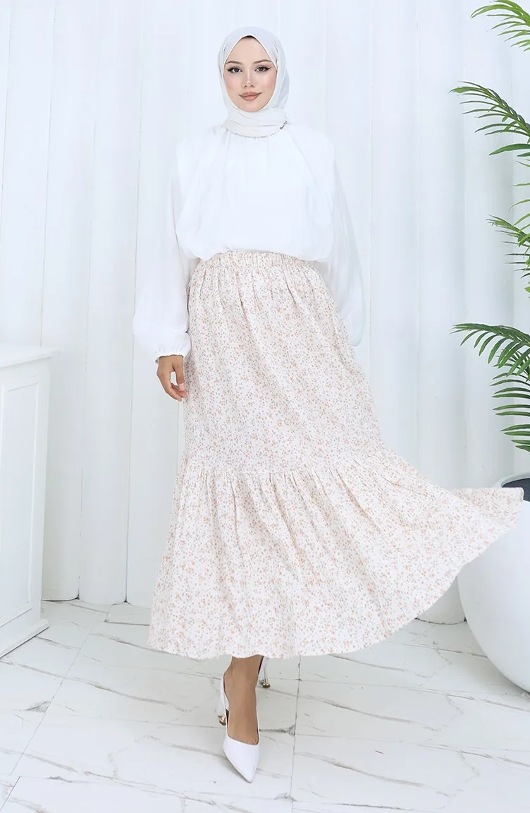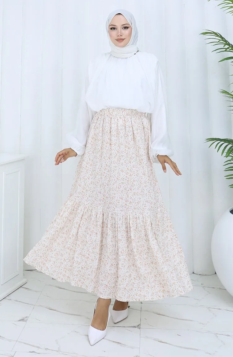 تنورة بخصر مطاطي 0144-03 بيج 0144-03