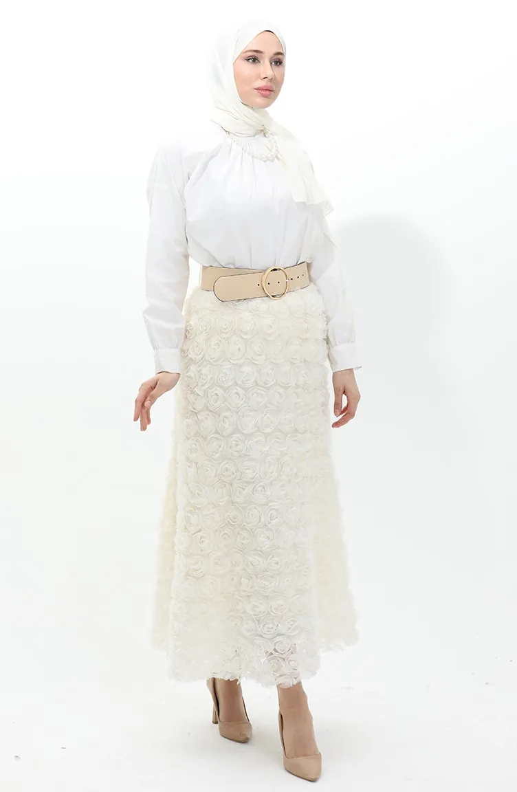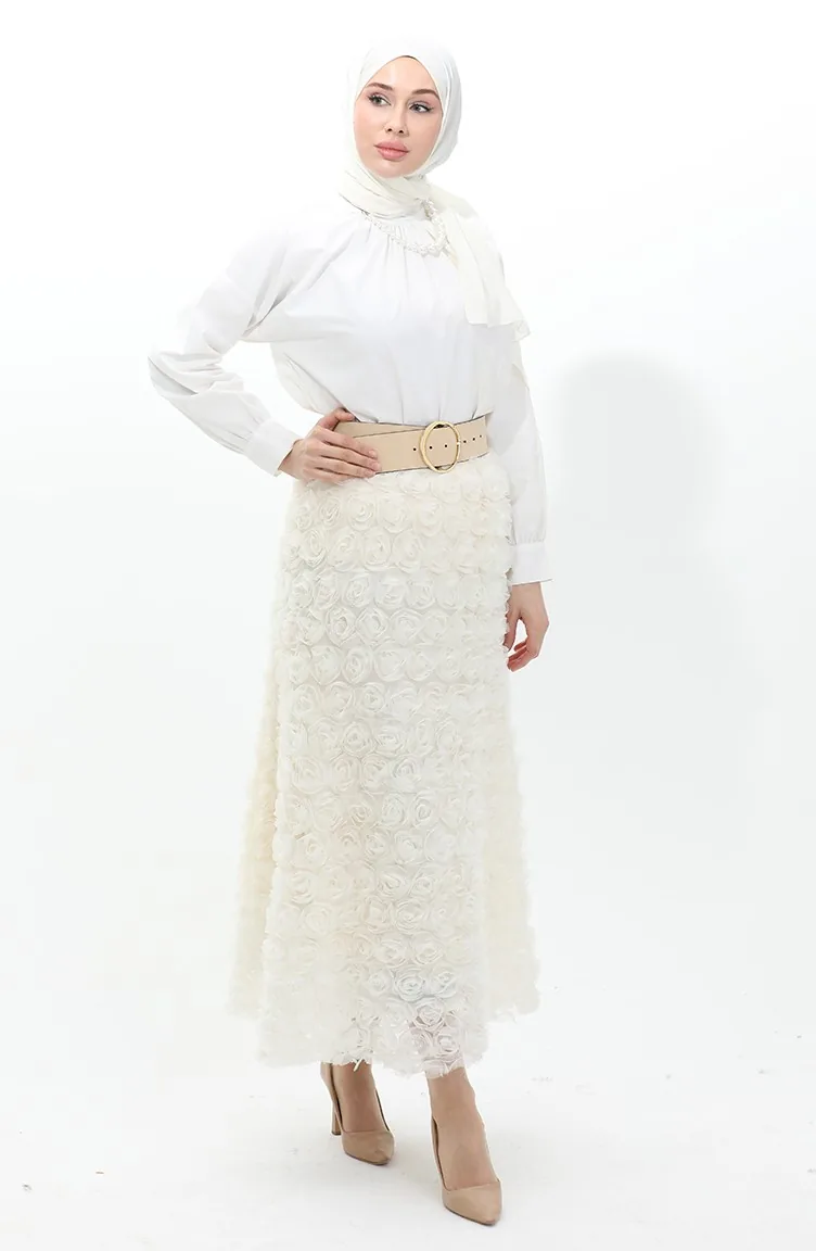 تنورة من التول الوردي 21300-02 كريمي 21300-02