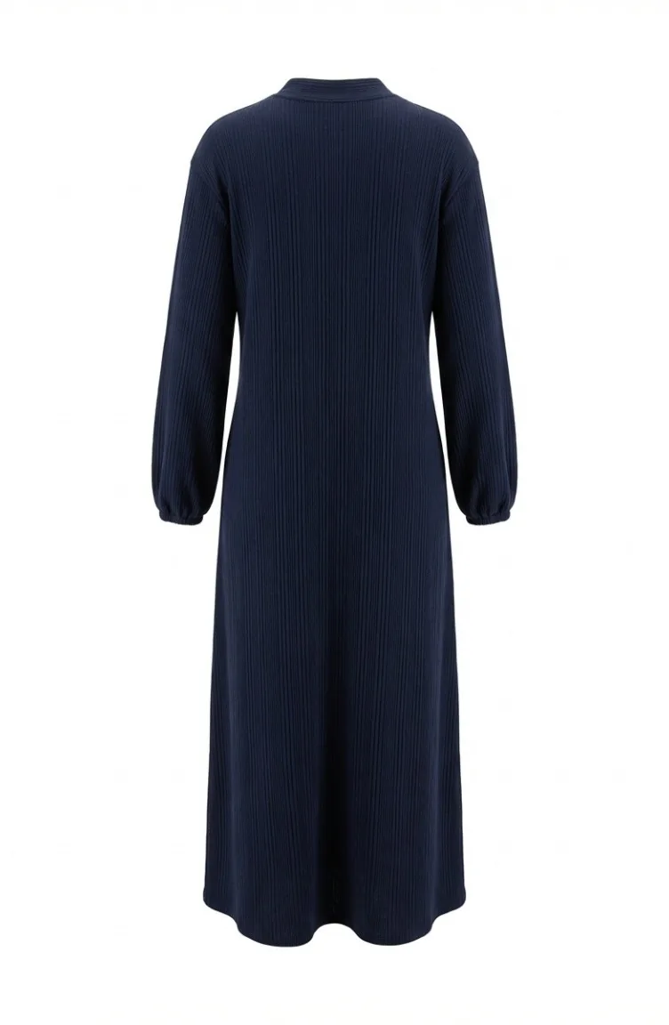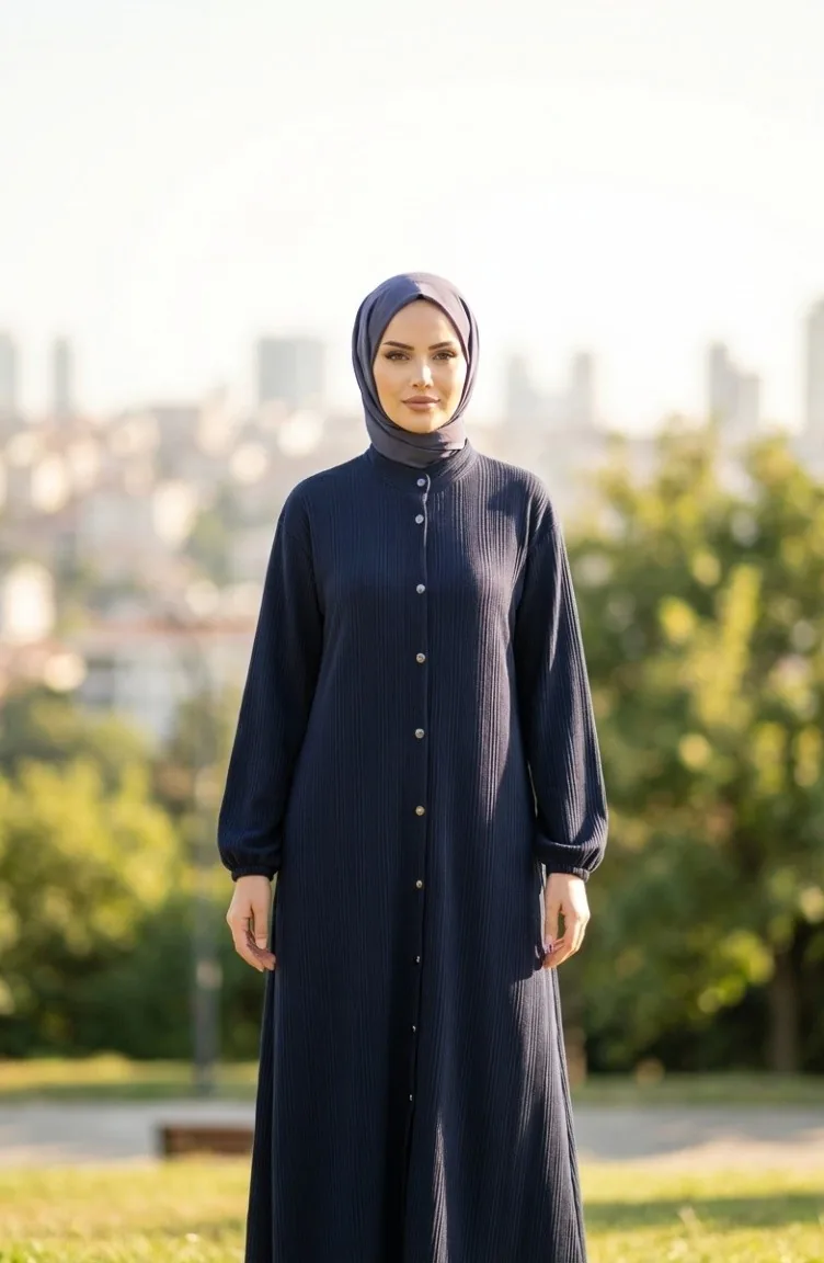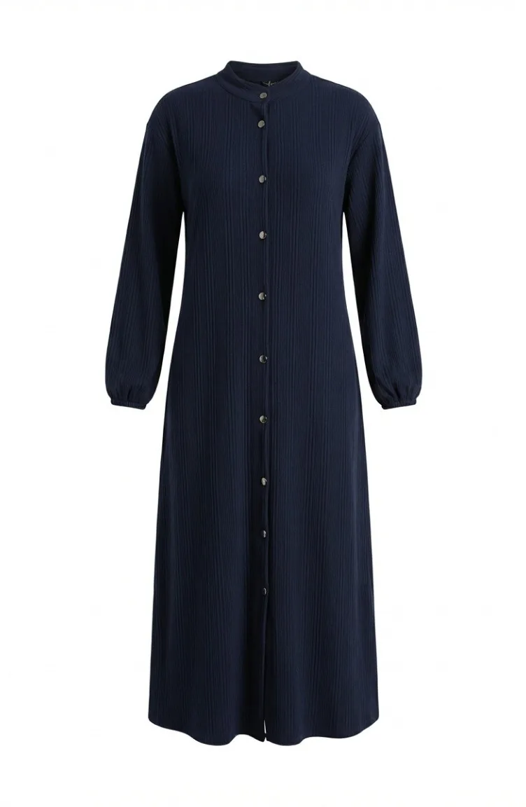 عباية شتوية طويلة بأزرار أمامية وأكمام مطاطية، موديل 2214-02، لون كحلي 2214-02