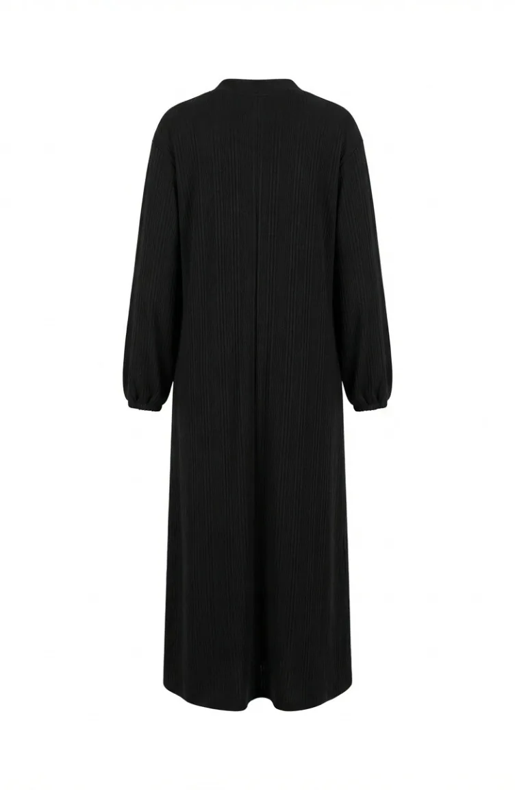 عباية شتوية طويلة بأزرار وأكمام مطاطية 2214-04 أسود 2214-04