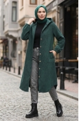 معطف كشمير بغطاء رأس وأزرار 0201-07 أخضر زمردي 0201-07