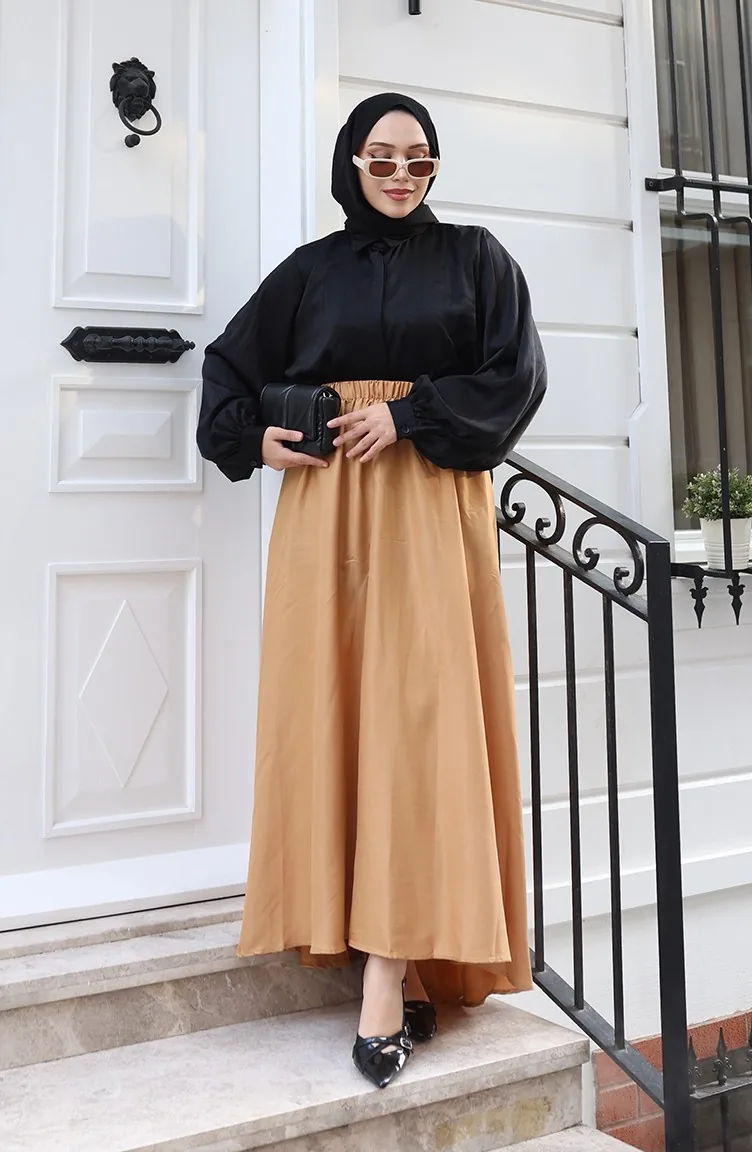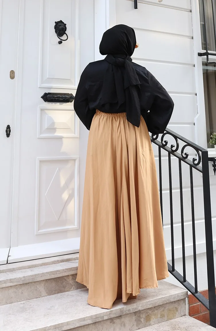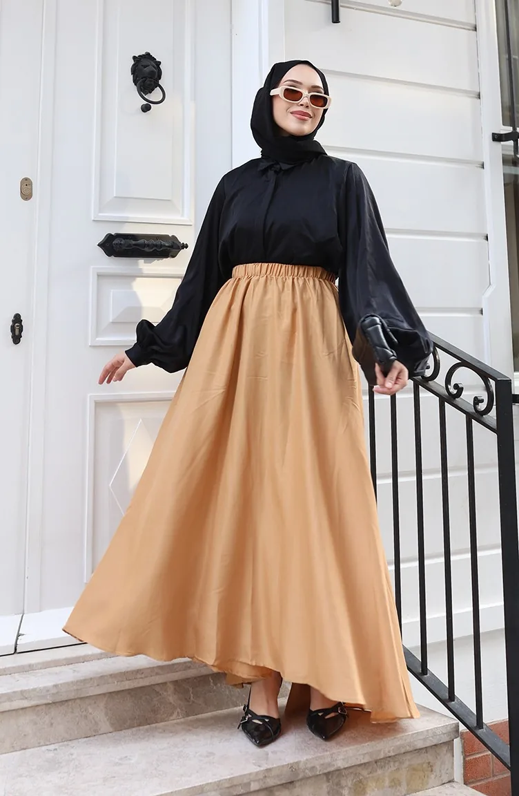 Beli Lastikli Rahat Kesim Etek 0227-04 Sütlü kahve