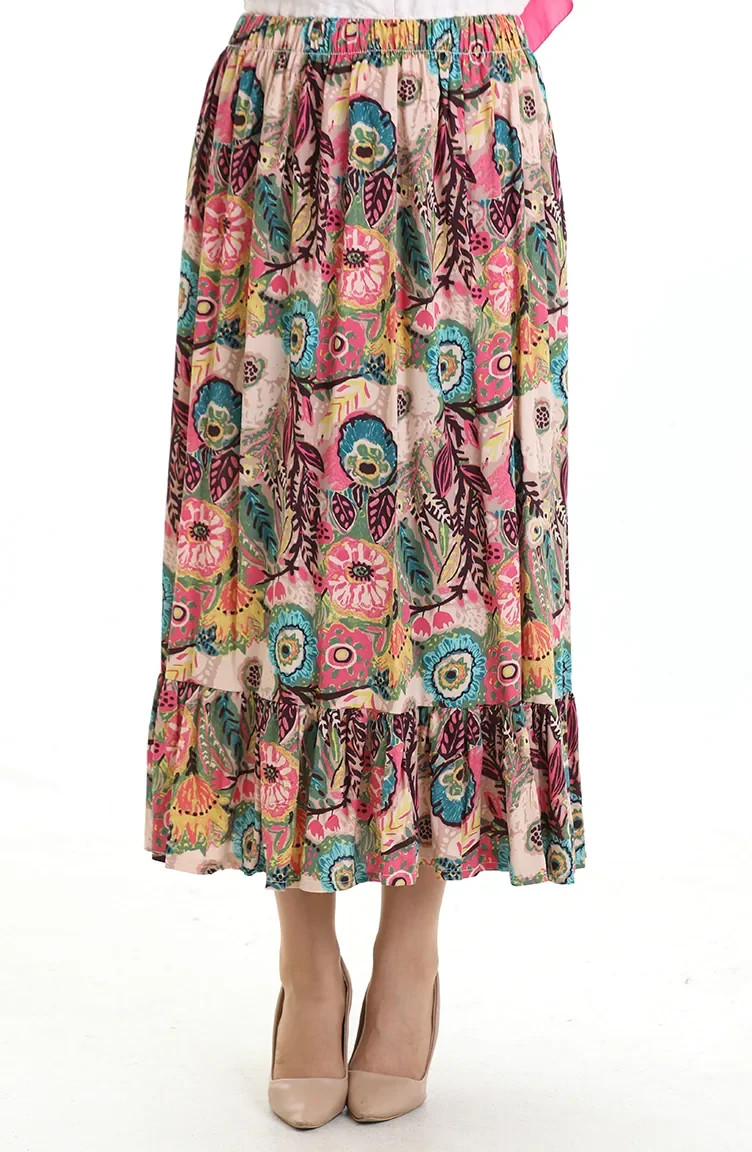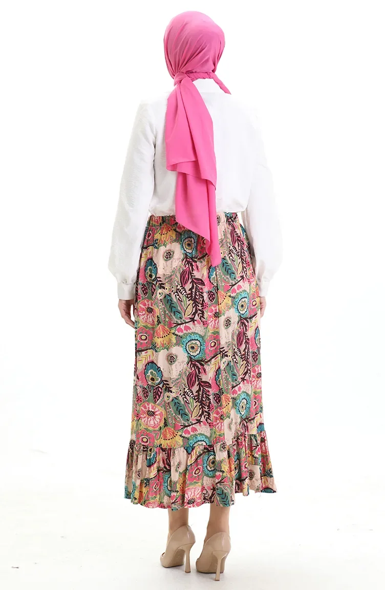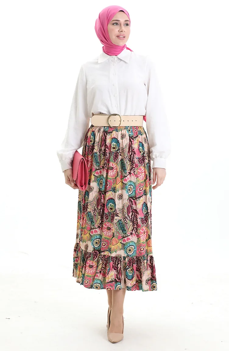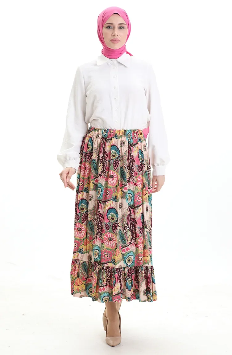 Beli Lastikli Viskon Etek 2105-04 Fuşya Petrol