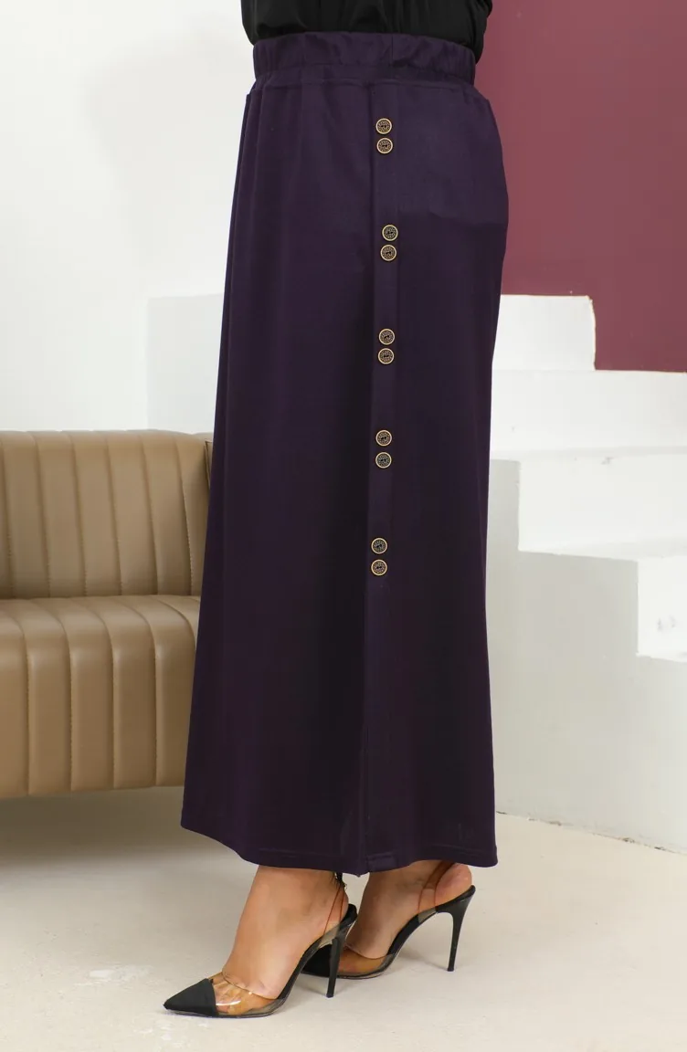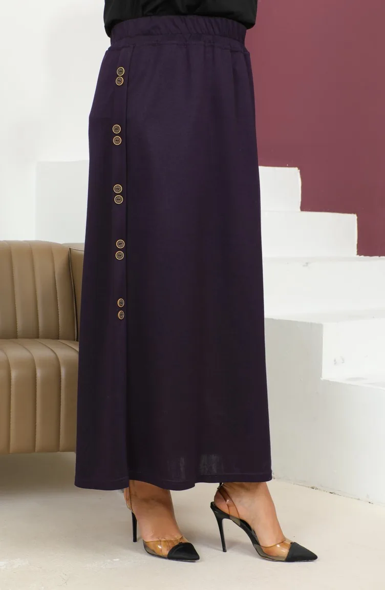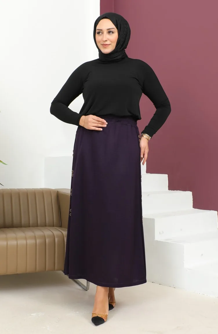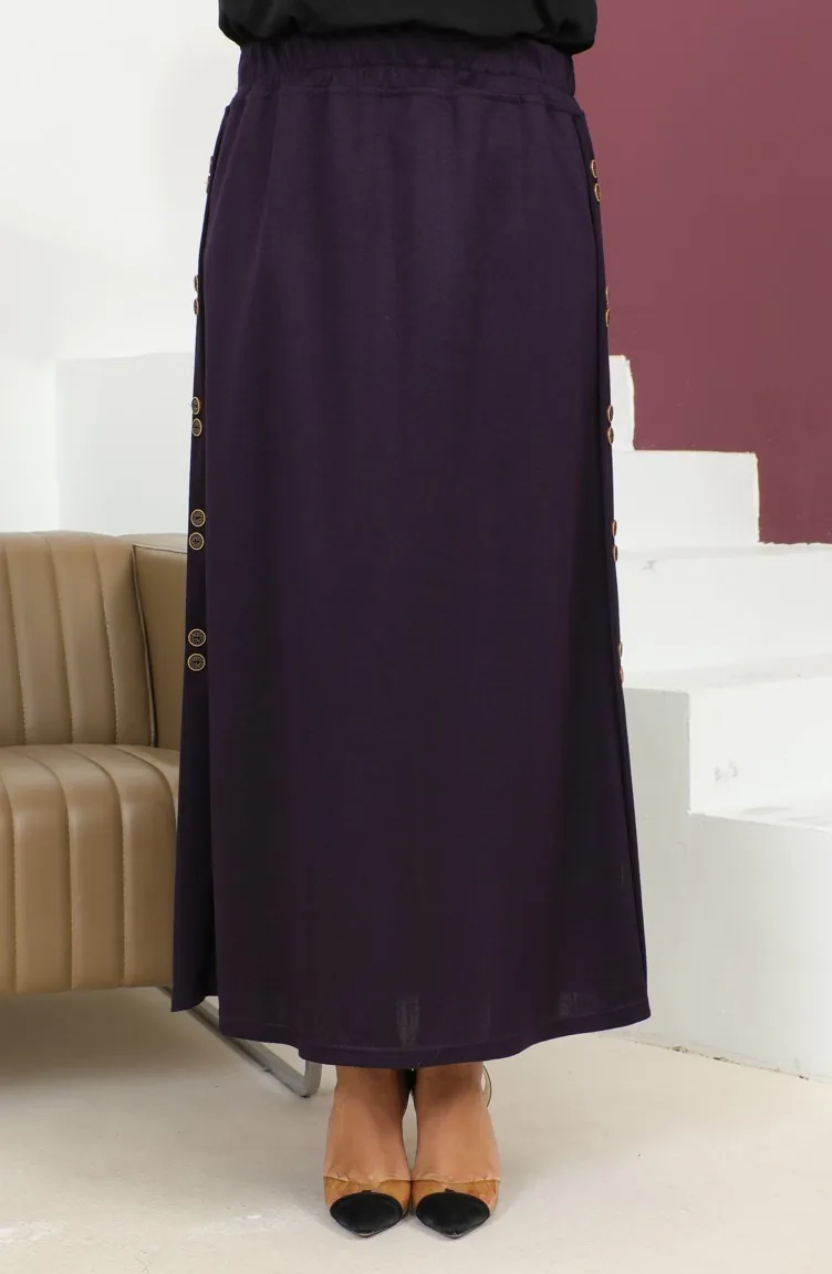 Büyük Beden Düğme Detaylı Lastikli Etek 4200-03 Mürdüm