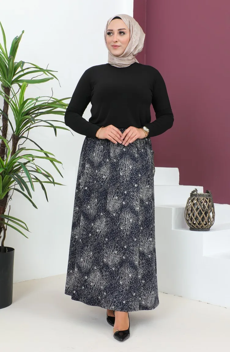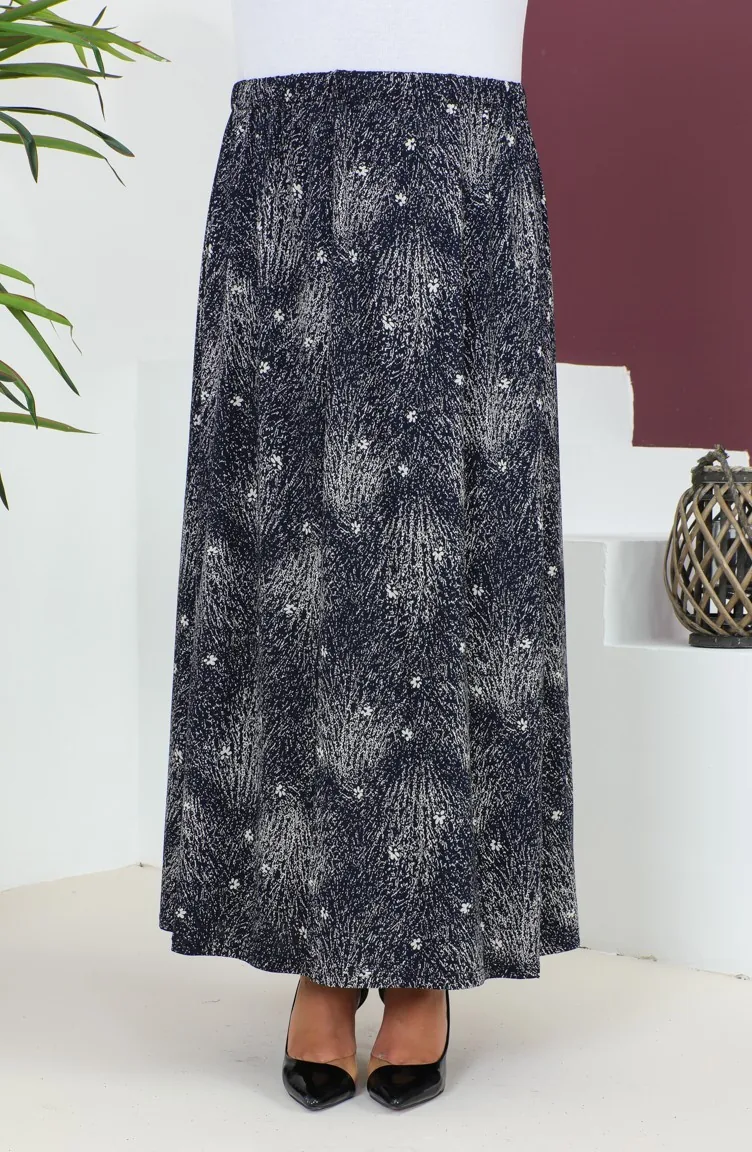 Büyük Beden Parçalı Viskon Etek 4360D-02 Lacivert