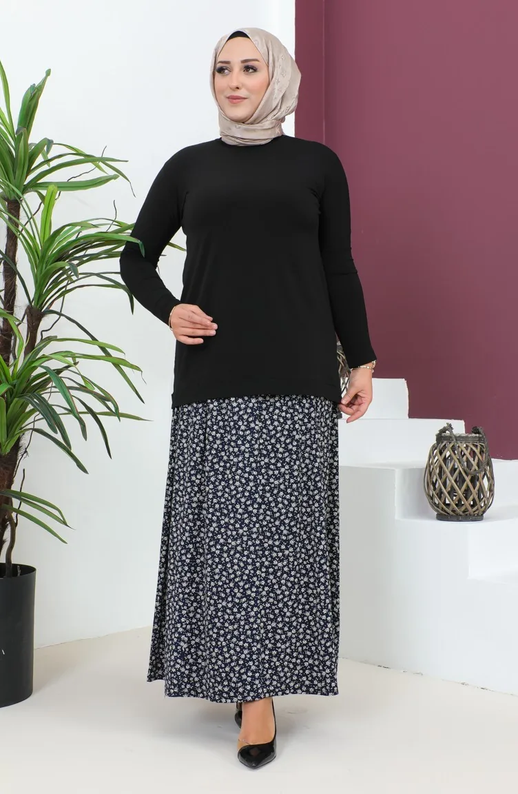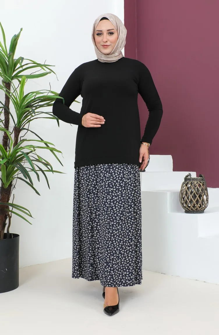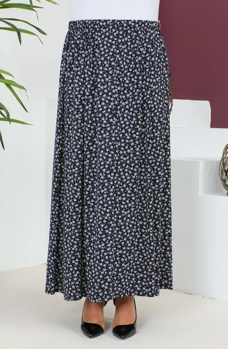 Büyük Beden Parçalı Viskon Etek 4360K-02 Lacivert