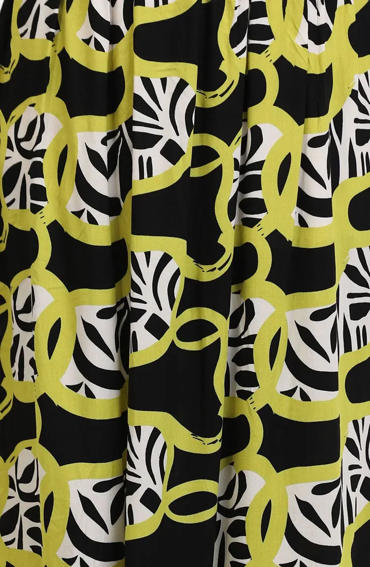 Siyah renktedir. Viskon kumaş. Desenli kumaş. Lastik detaylı. 4 Mevsim tercih edebilirsiniz. Standart.