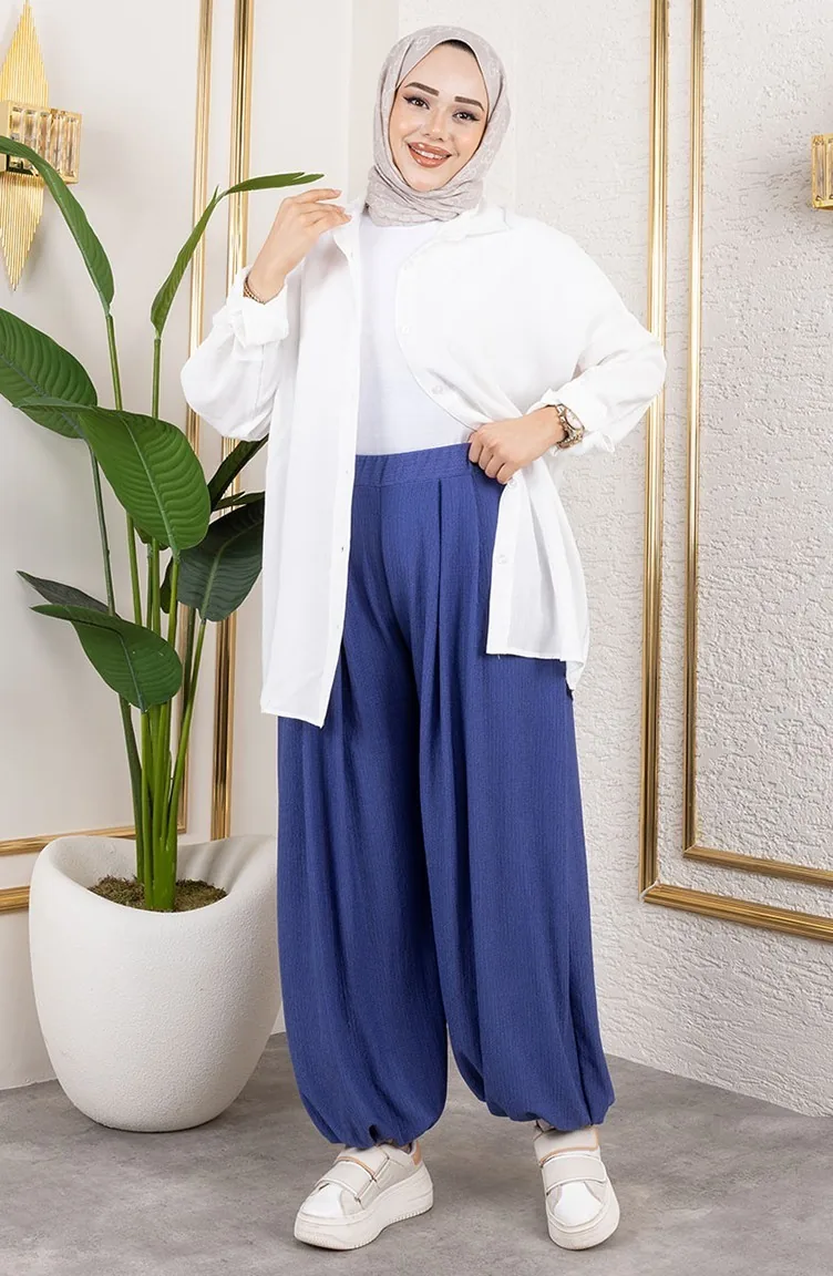 Beli Lastikli Şalvar Pantolon 0001-05 Açık Mavi