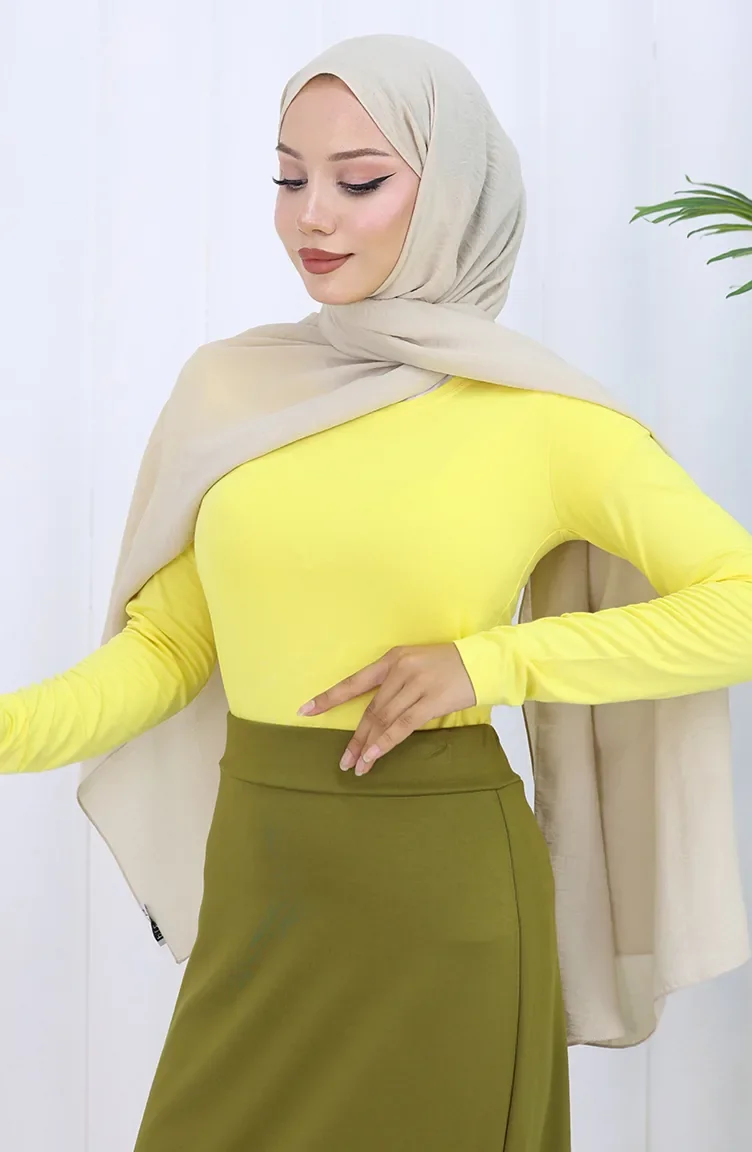 Sarı renktedir. Viskon kumaş. Sade. Sıfır yaka detayı ile rahat kullanıma sahiptir. Mevsimlik. Standart.