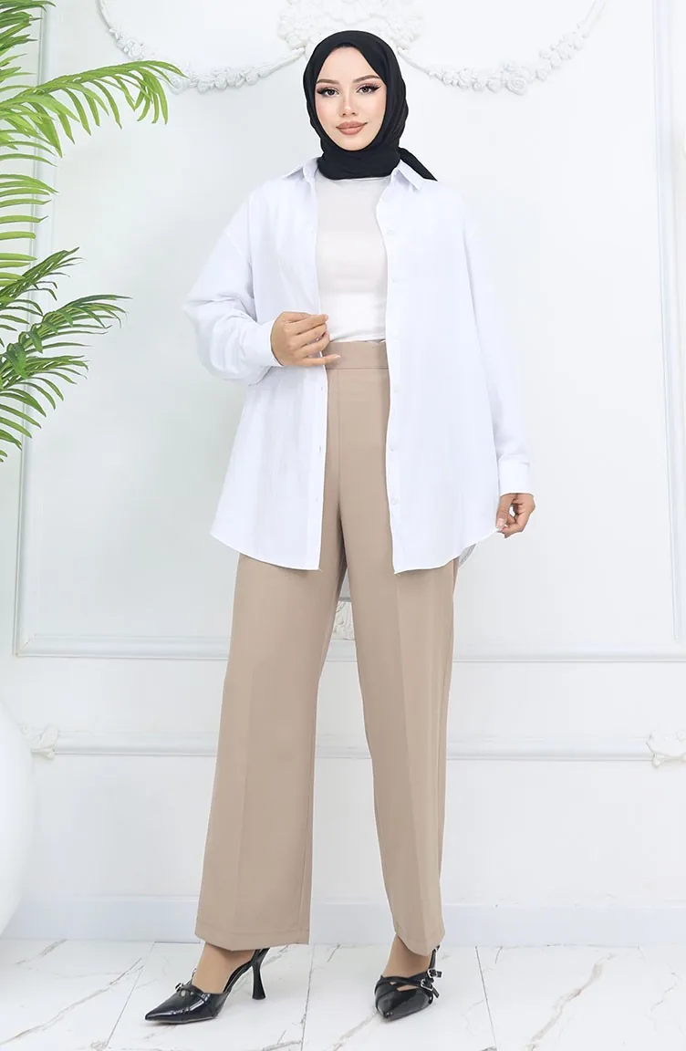Bol Paça Pantolon 4001-04 Sütlü kahve