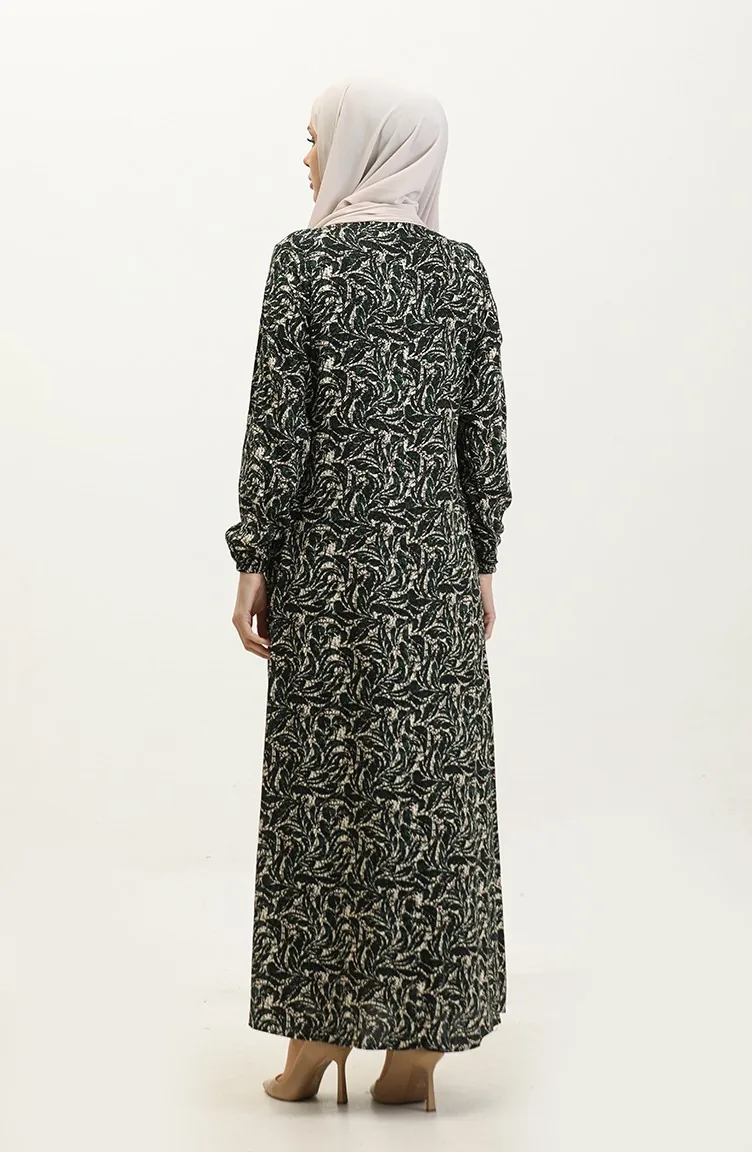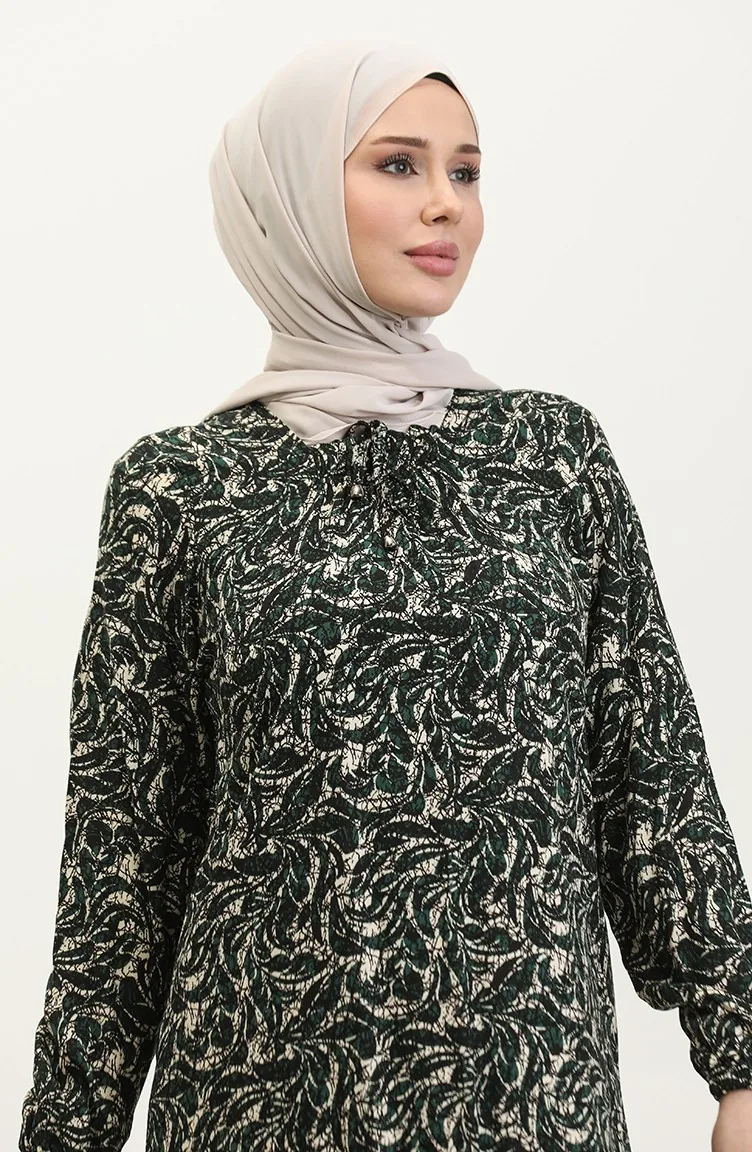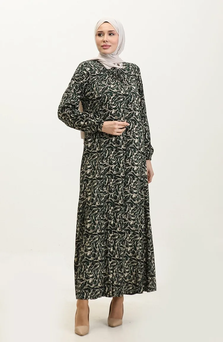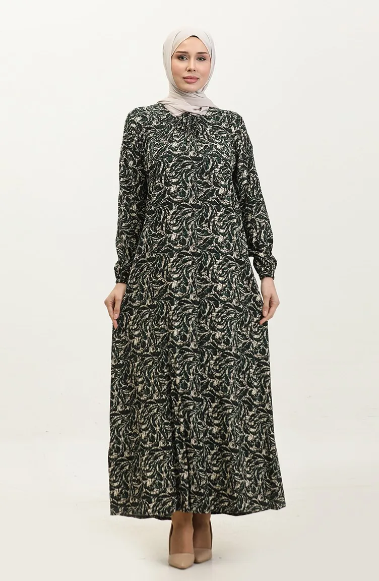 Büyük Beden Desenli Viskon Elbise 44851C-01 Zümrüt Yeşil