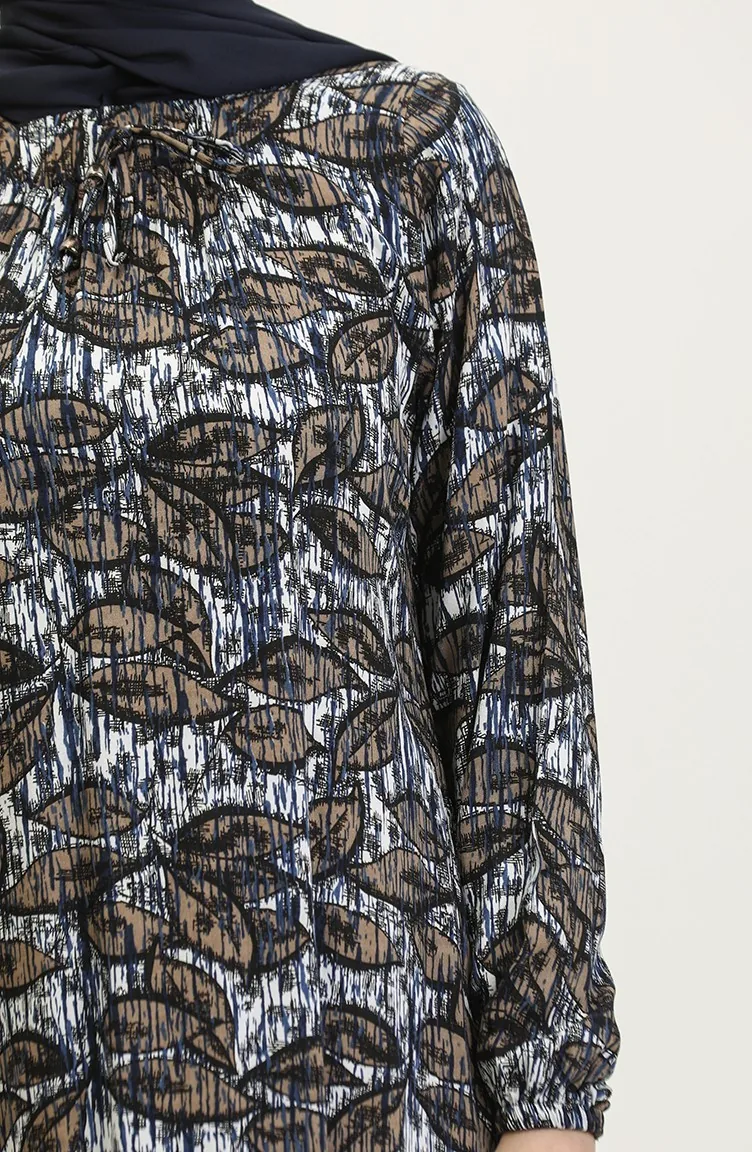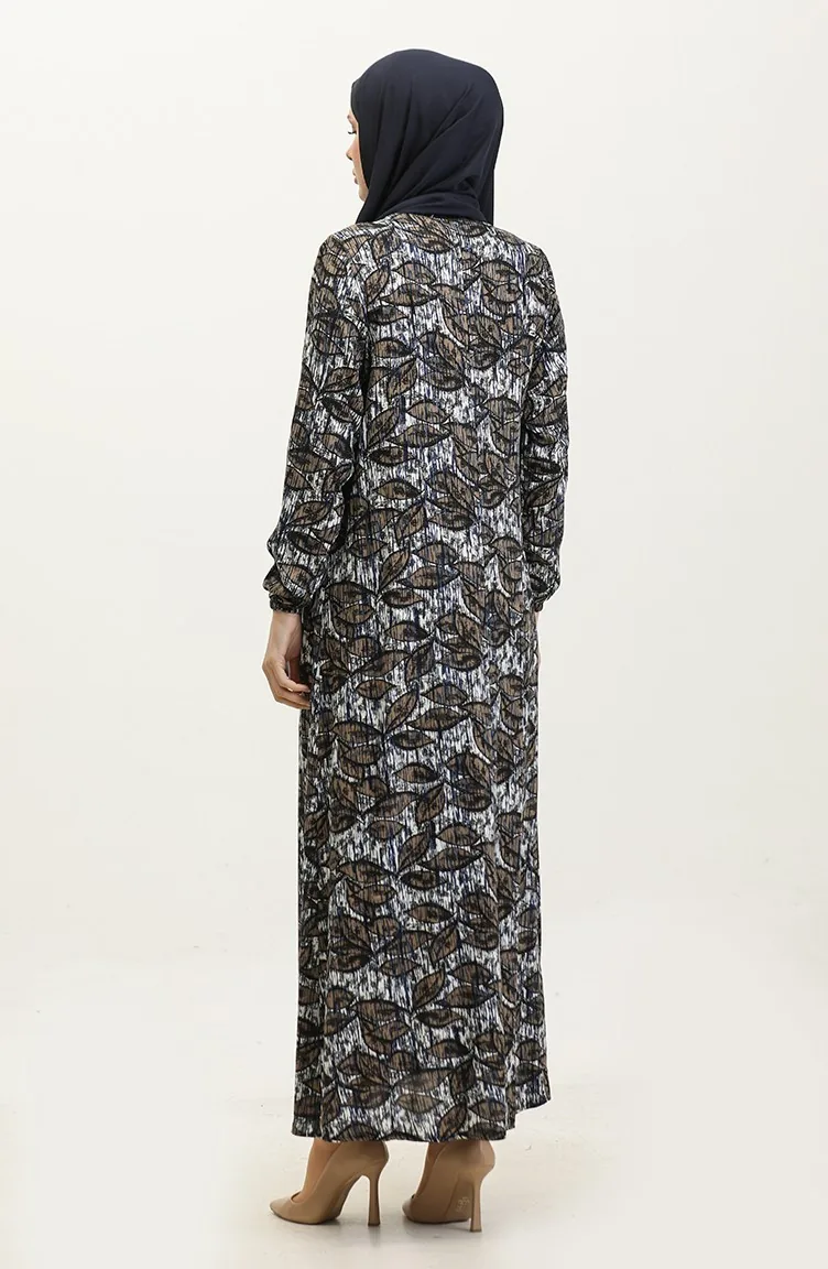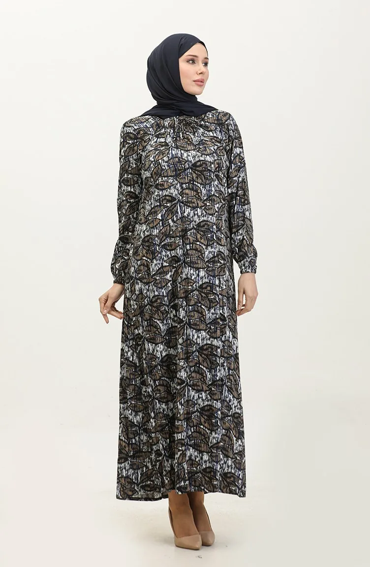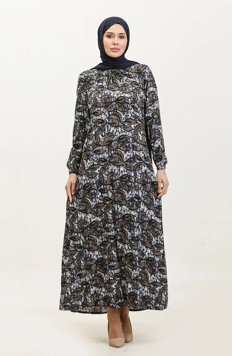 Büyük Beden Desenli Viskon Elbise 44851D-03 Lacivert