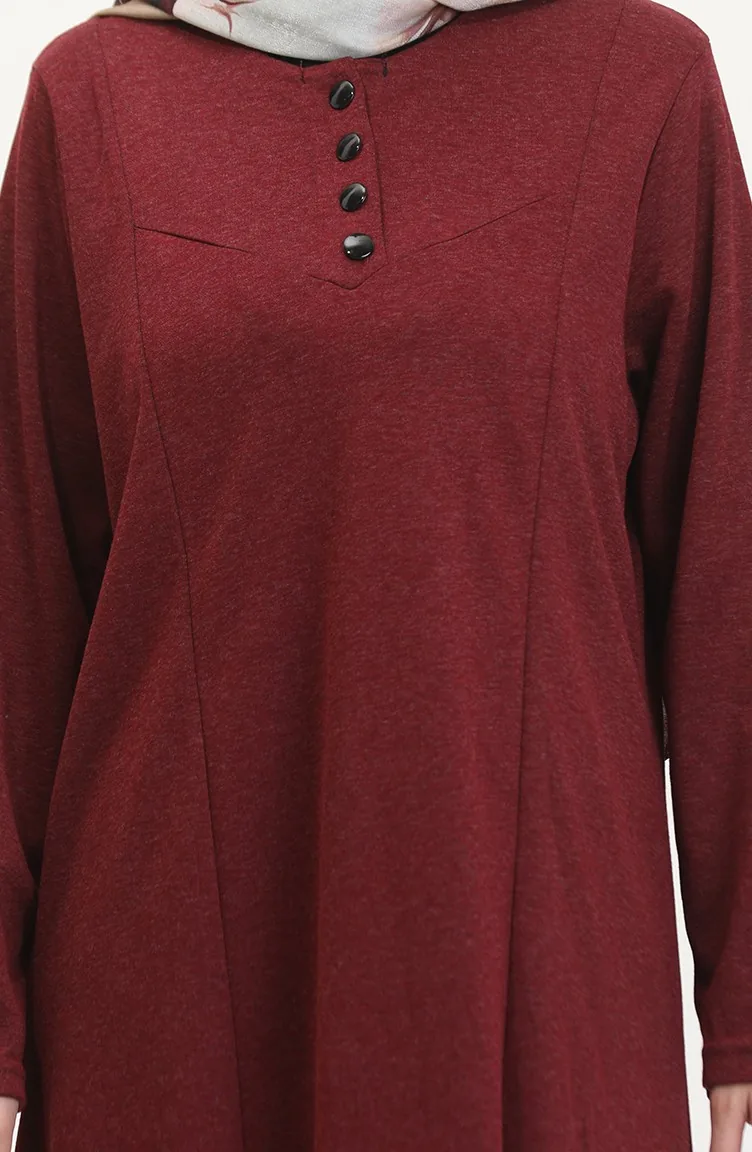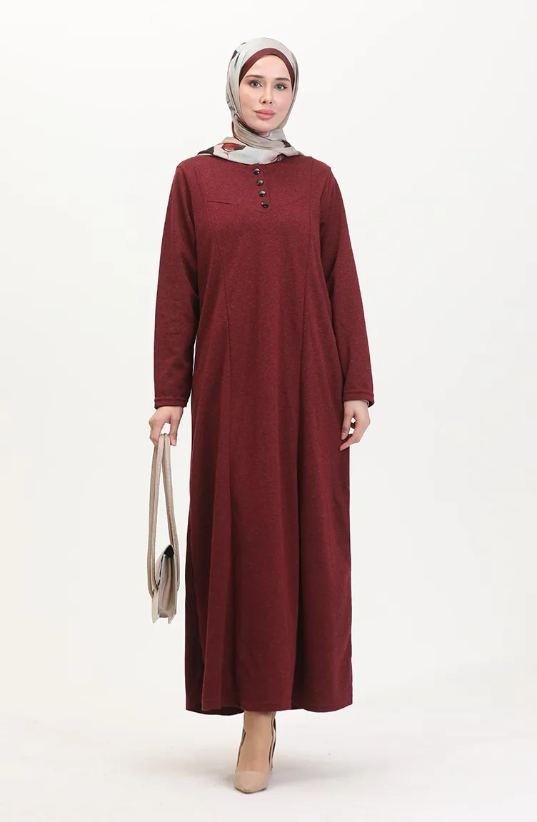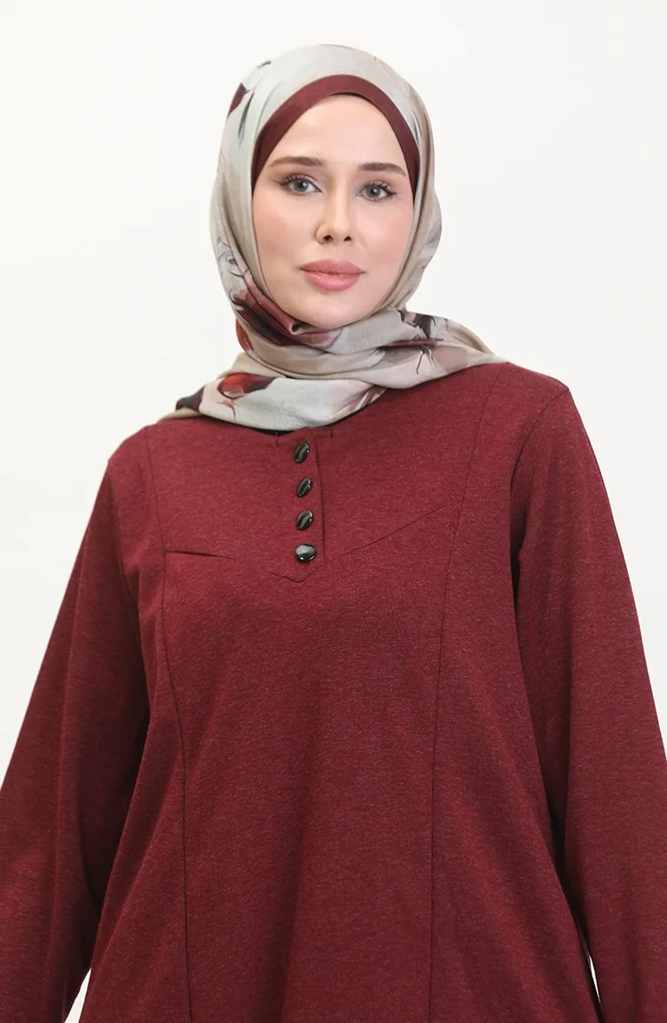 Büyük Beden Düğme Detaylı Elbise 0532-03 Bordo