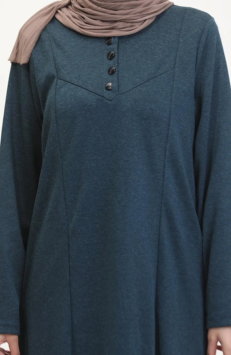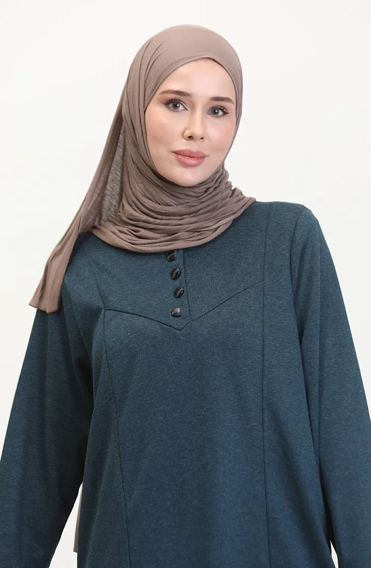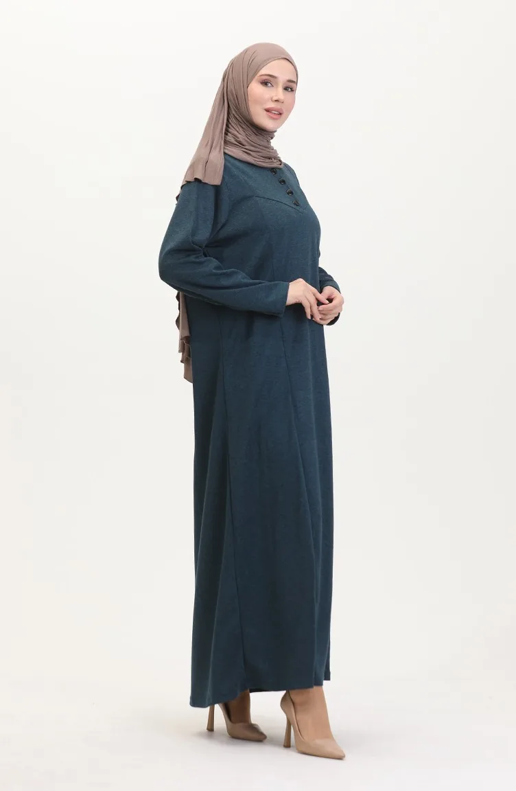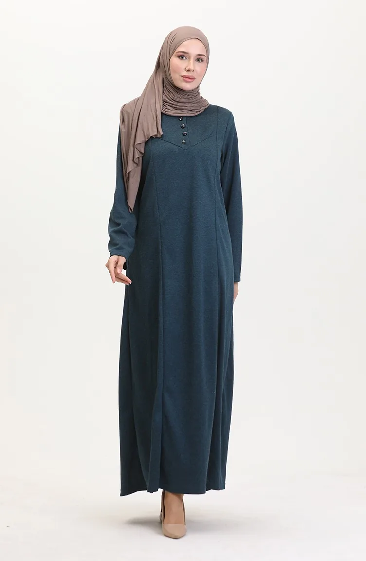 Büyük Beden Düğme Detaylı Elbise 0532-06 Petrol