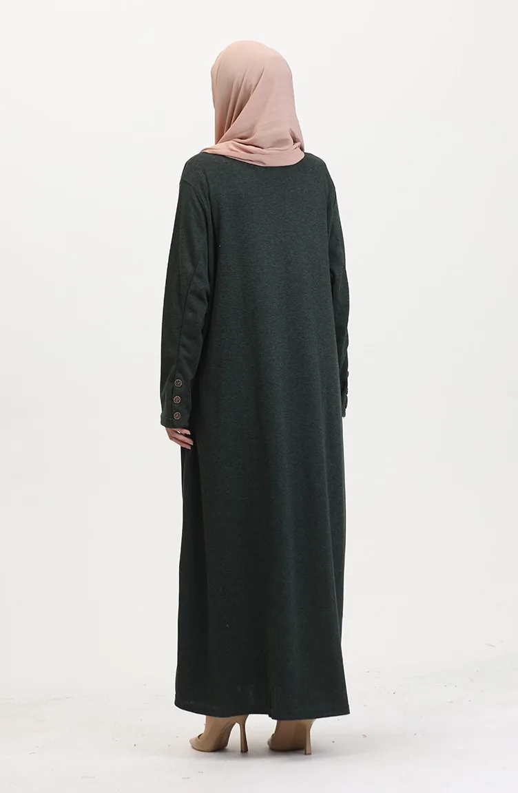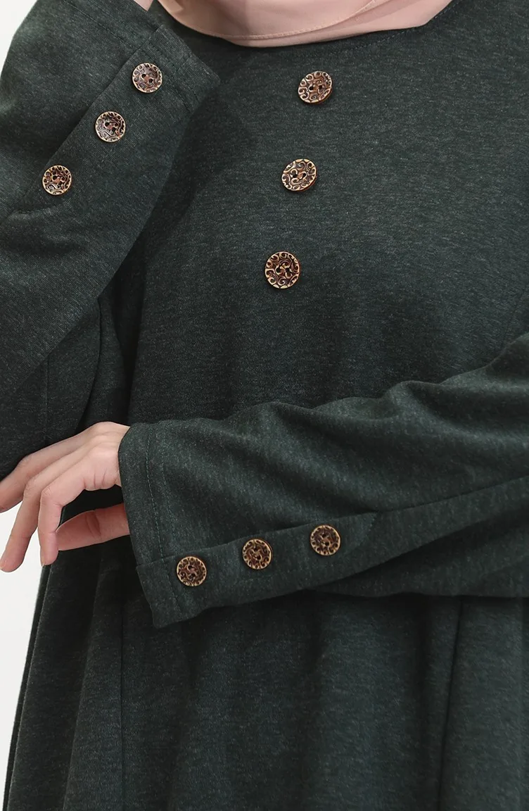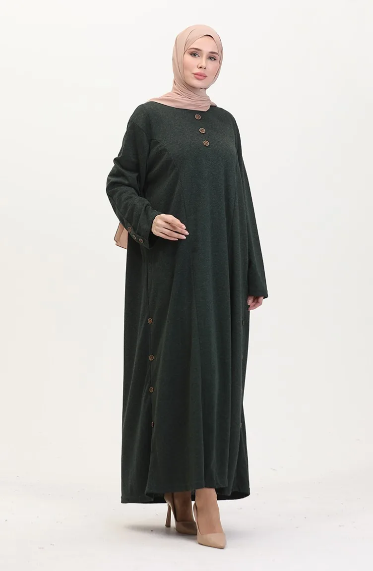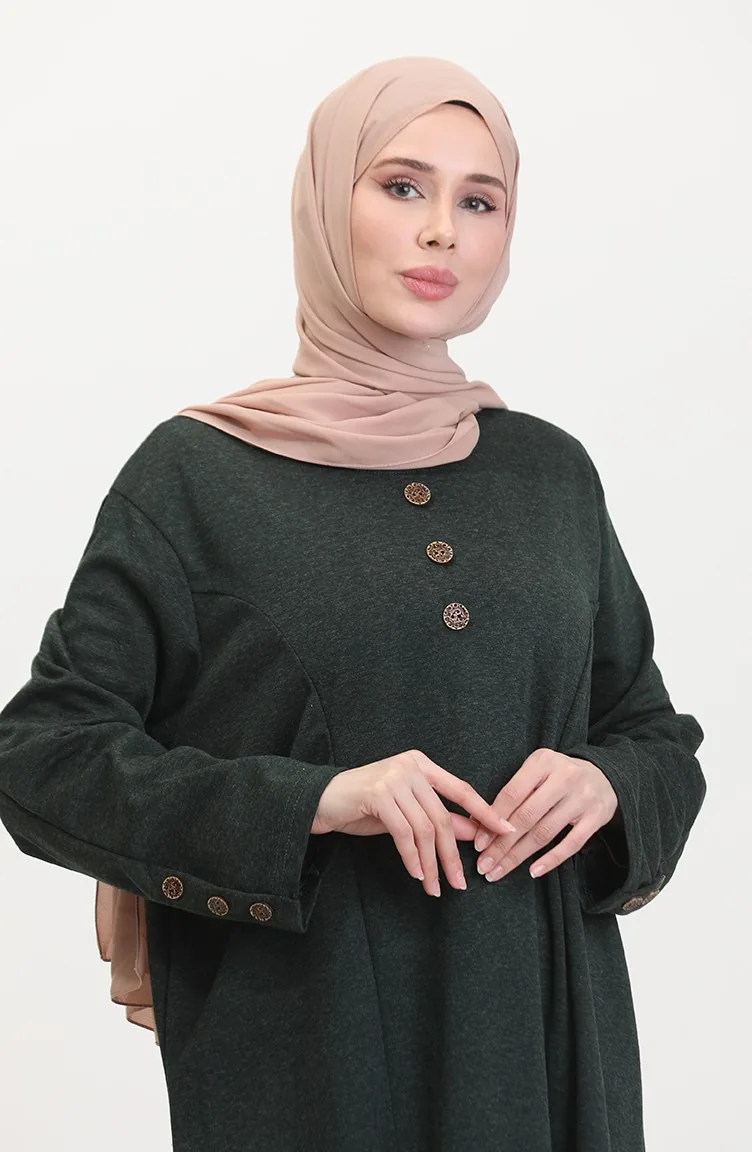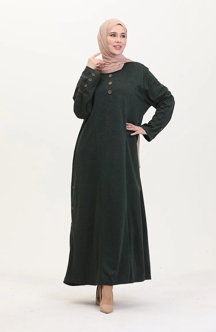 Büyük Beden Düğme Detaylı Elbise 0533-03 Zümrüt Yeşili