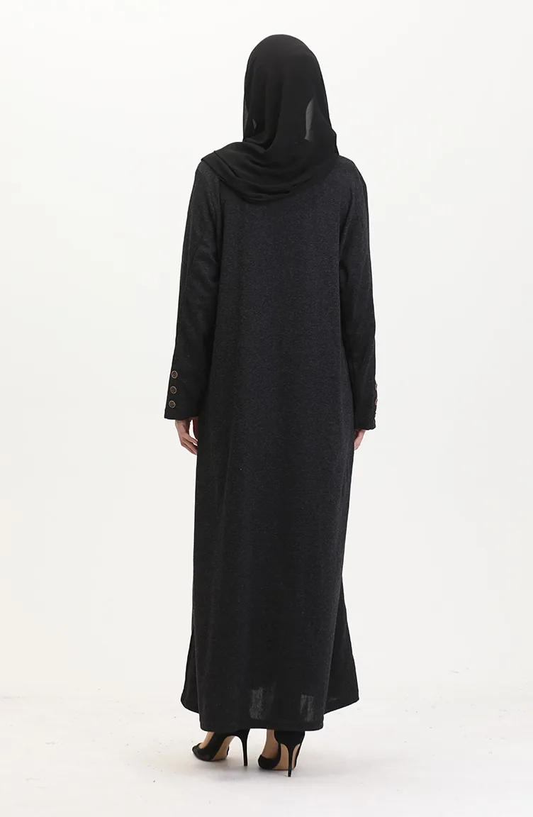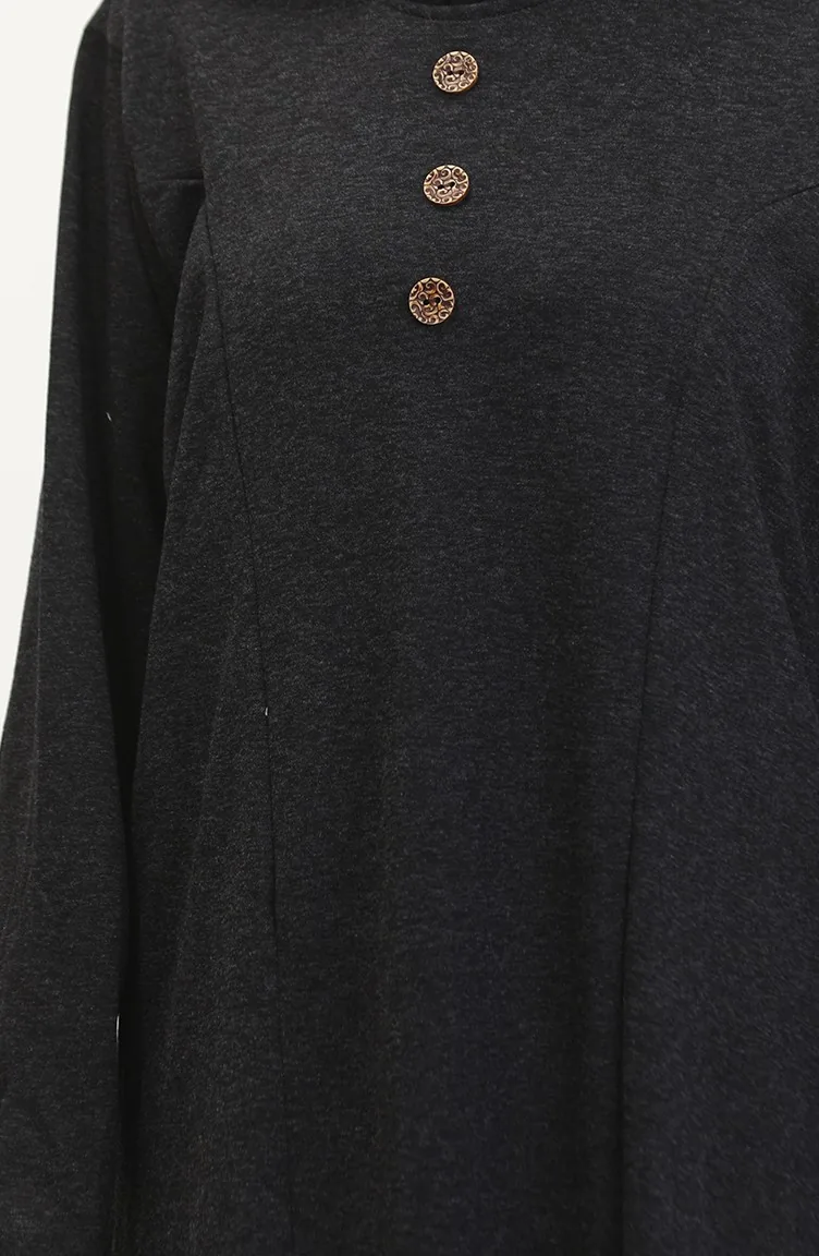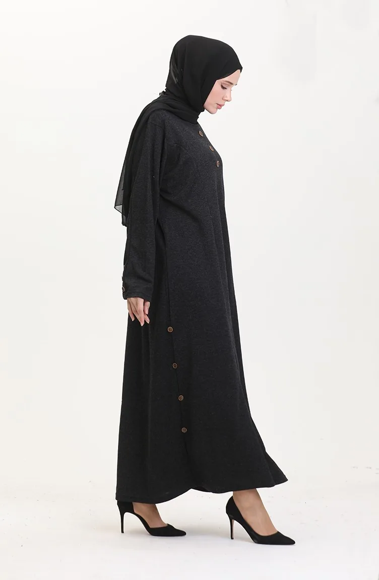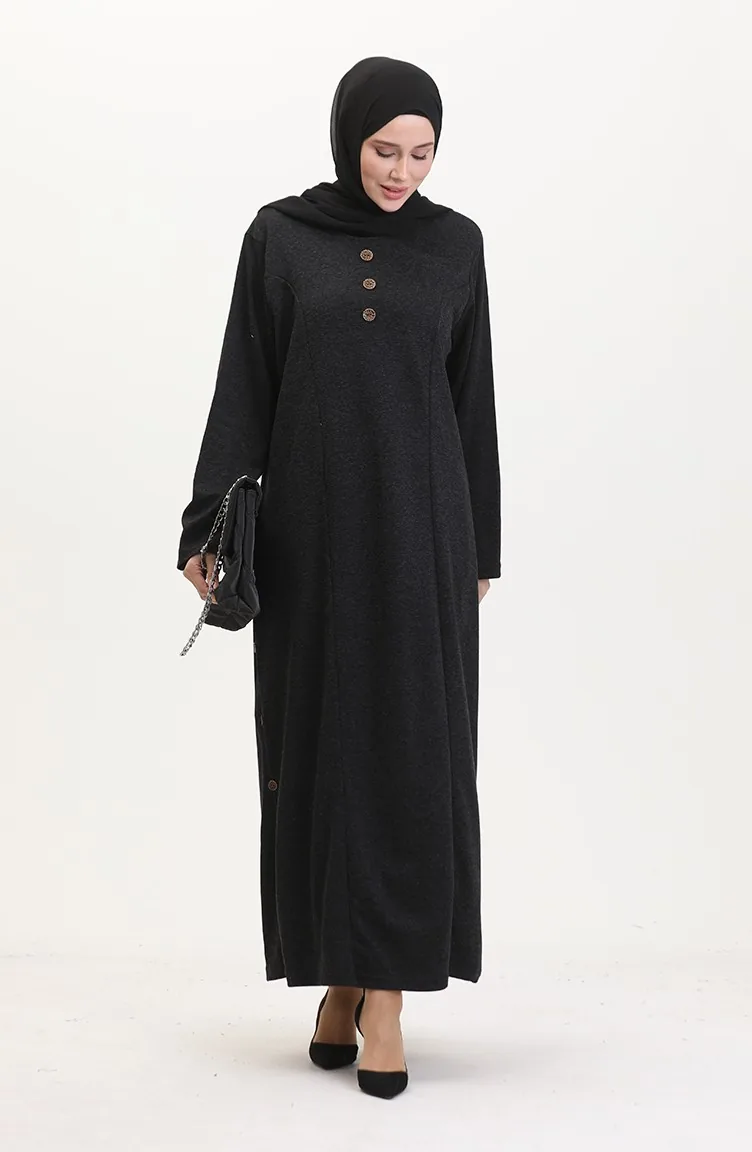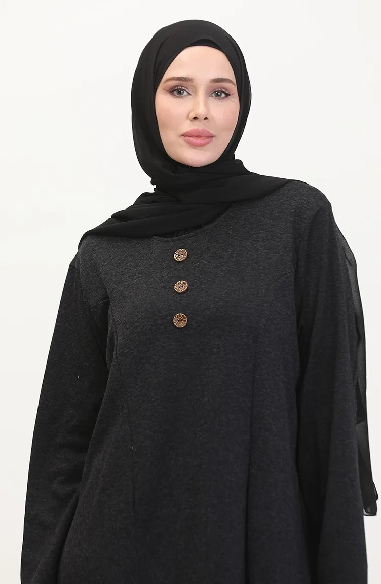 Büyük Beden Düğme Detaylı Elbise 0533-04 Siyah
