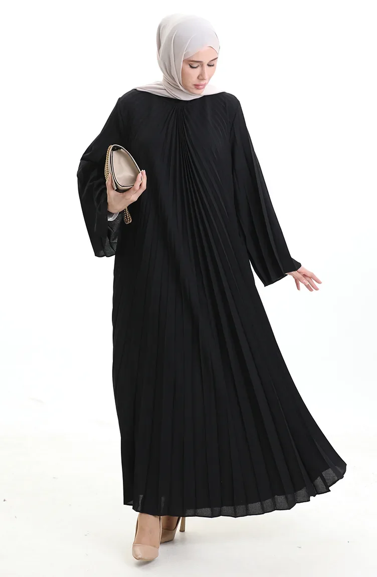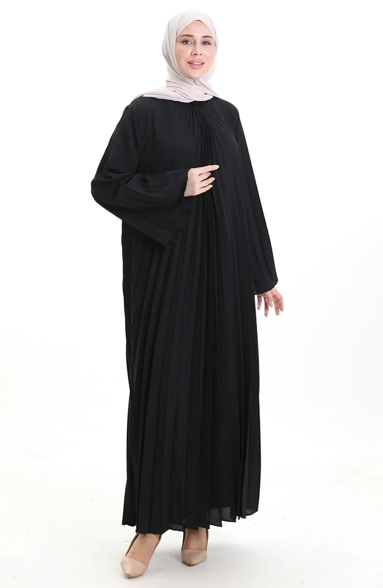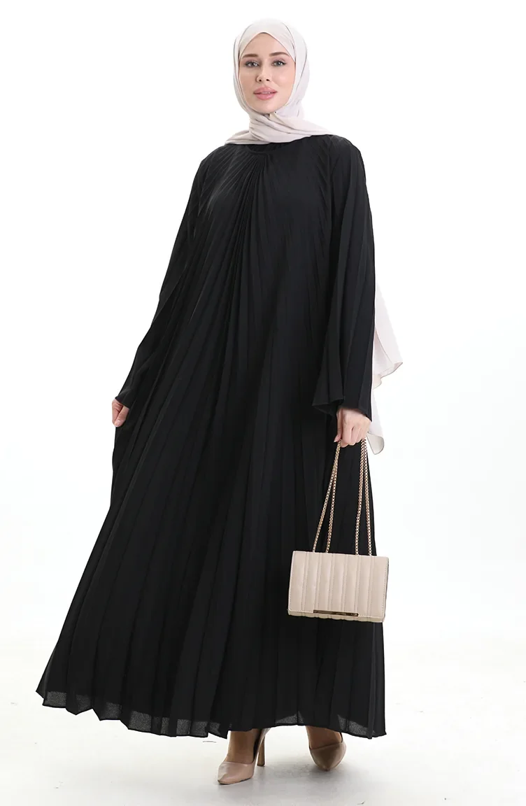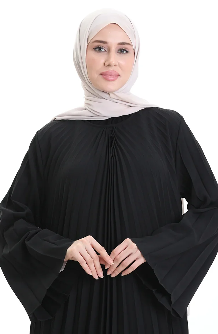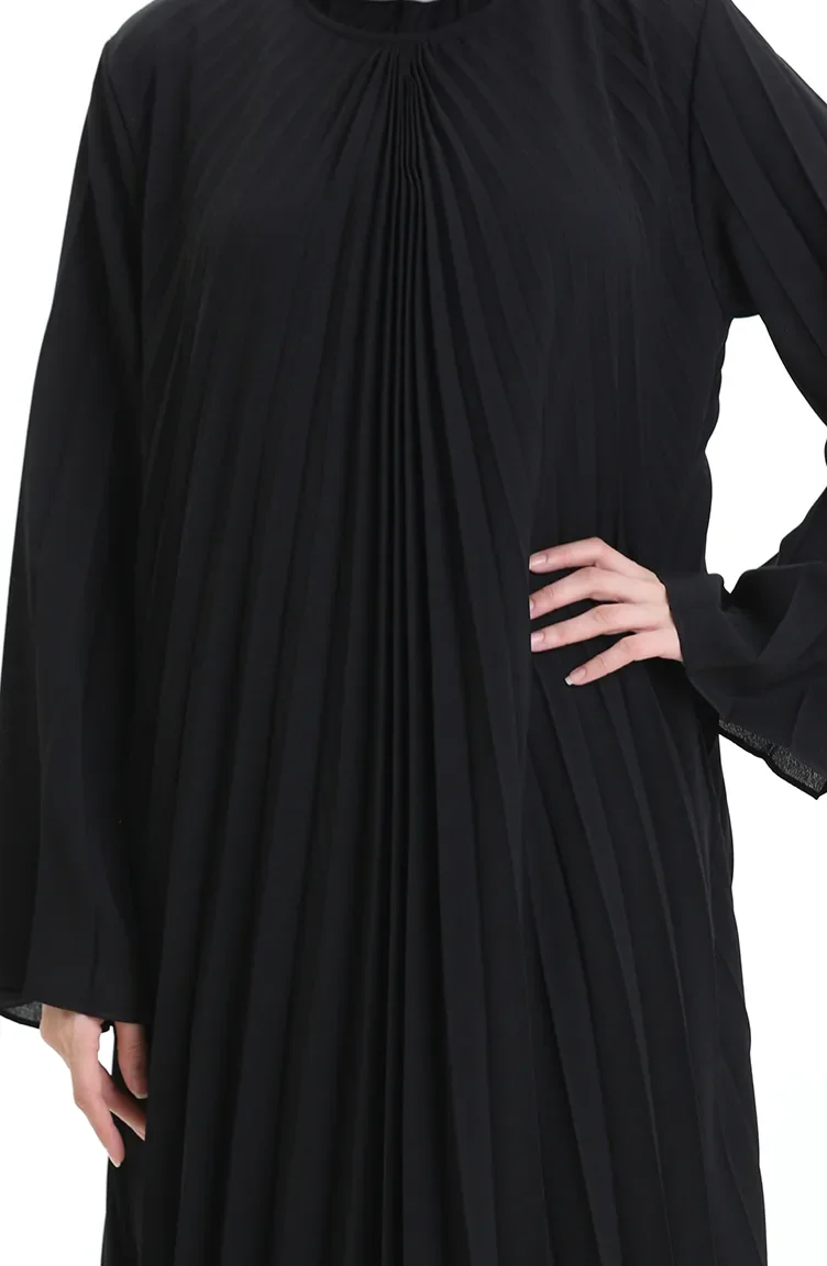 Büyük Beden Piliseli Soley Elbise 0163-01 Siyah