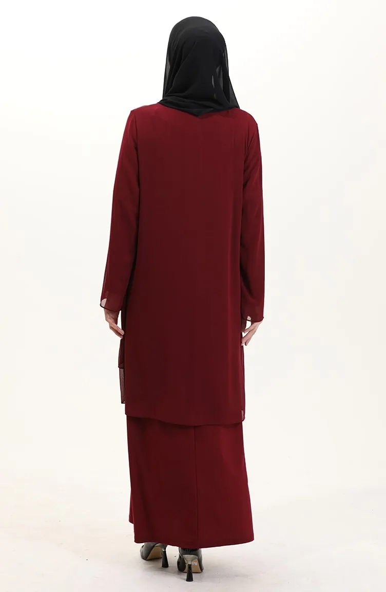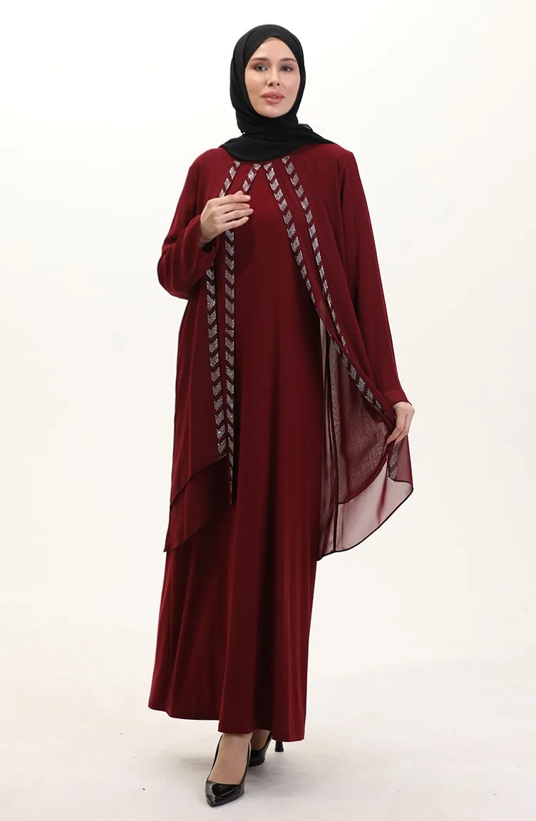 Bordo renktedir. Şifon kumaş. Sade. Taş işlemeli. Sıfır yaka detayı ile rahat kullanıma sahiptir. 4 Mevsim tercih edebilirsiniz. Büyük beden seçeneği mevcuttur.