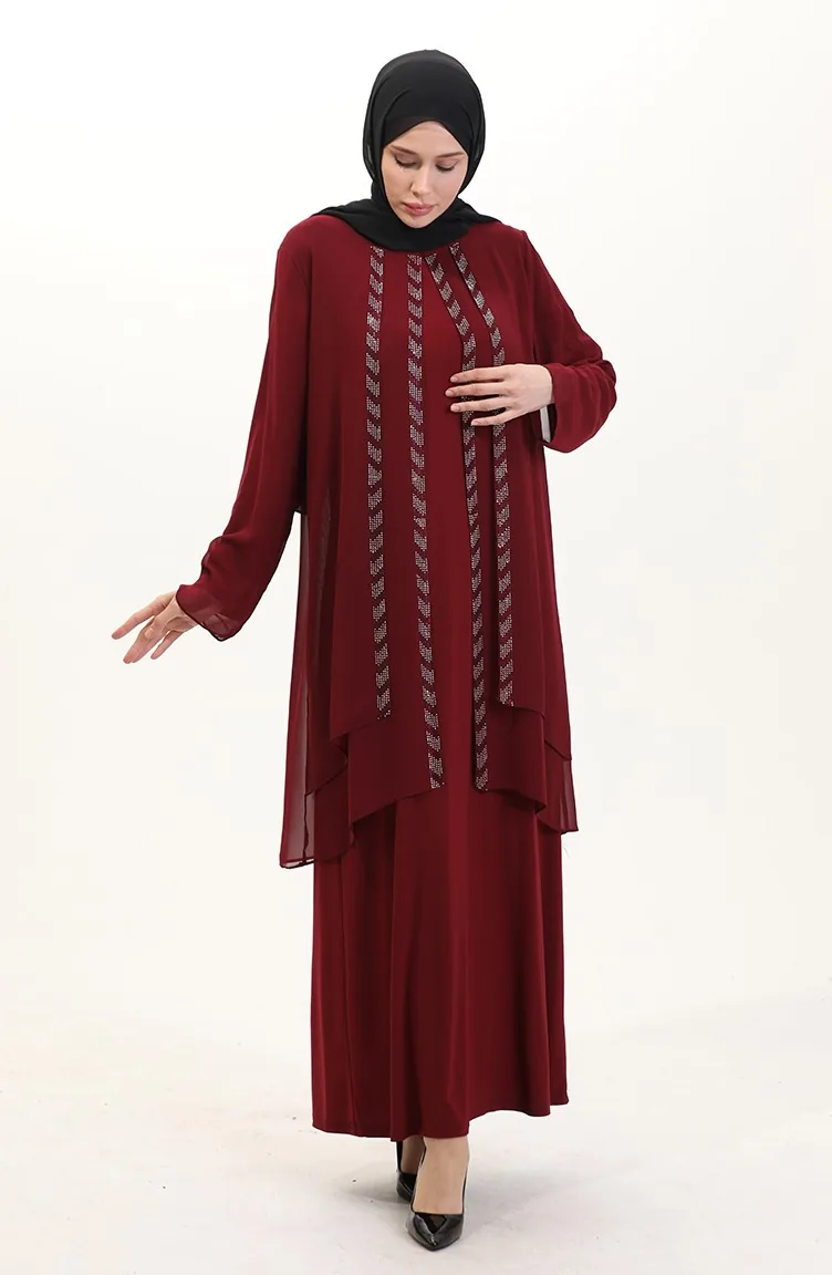 Büyük Beden Şifon Elbise 6165-03 Bordo
