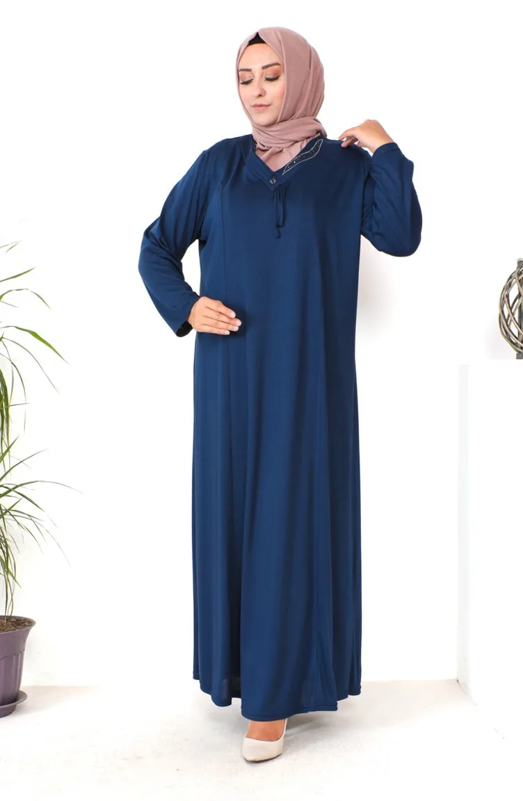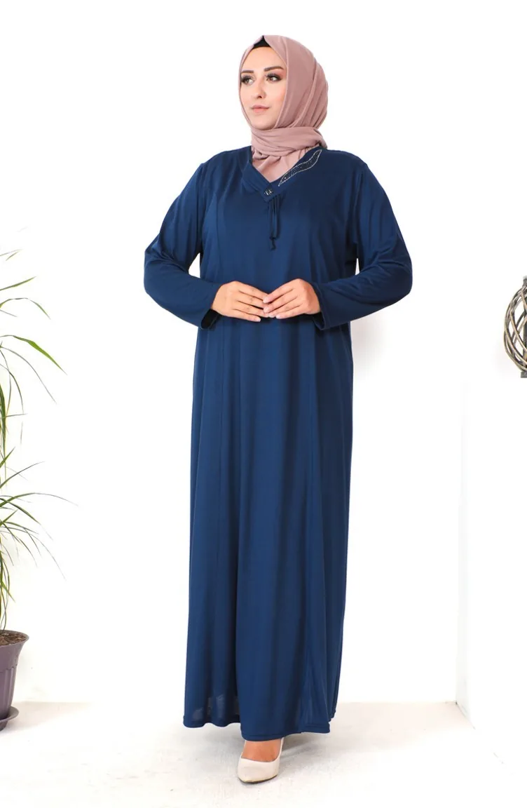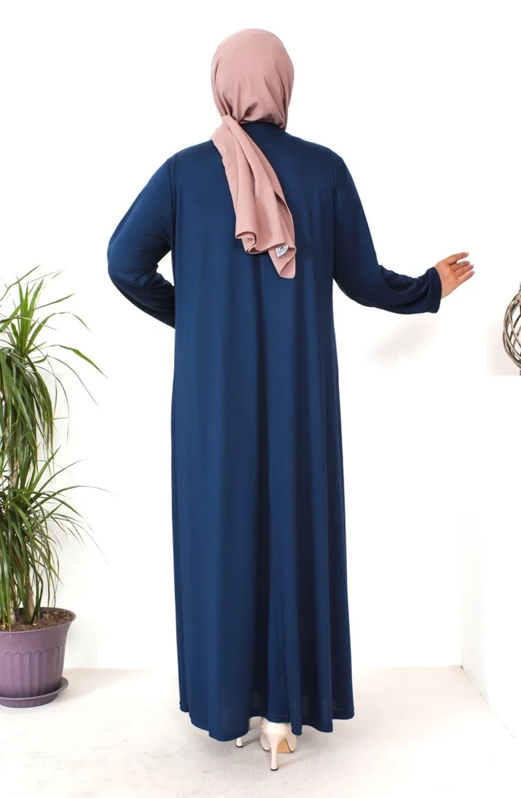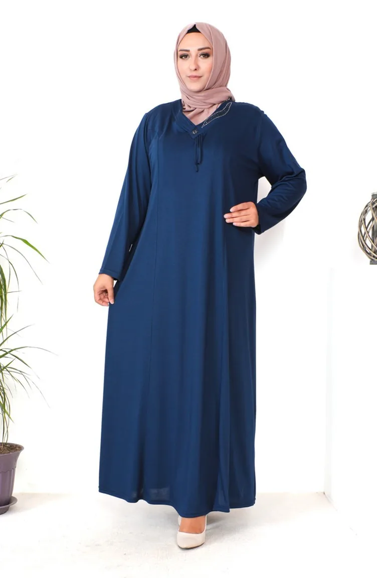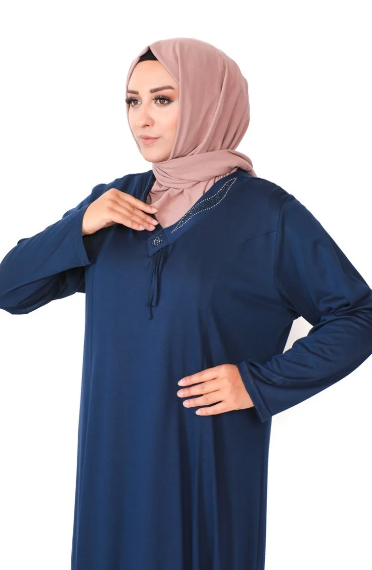 Büyük Beden Taş Baskılı Penye Elbise 4932-09 Lacivert