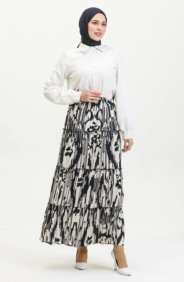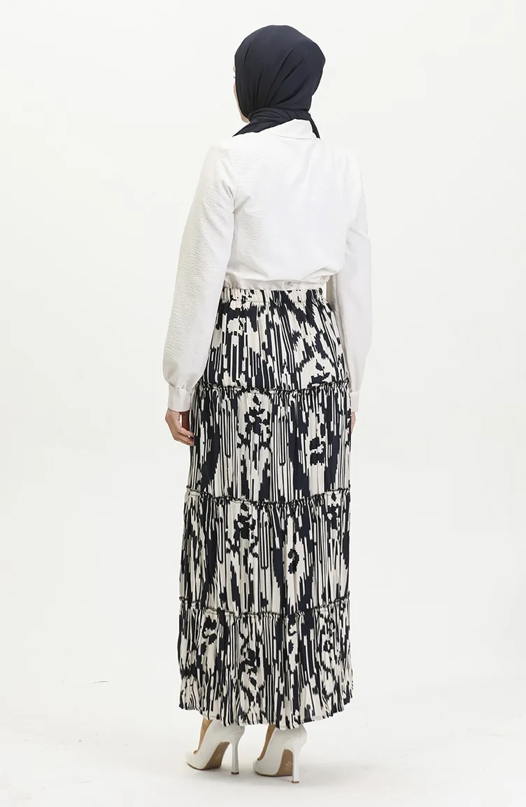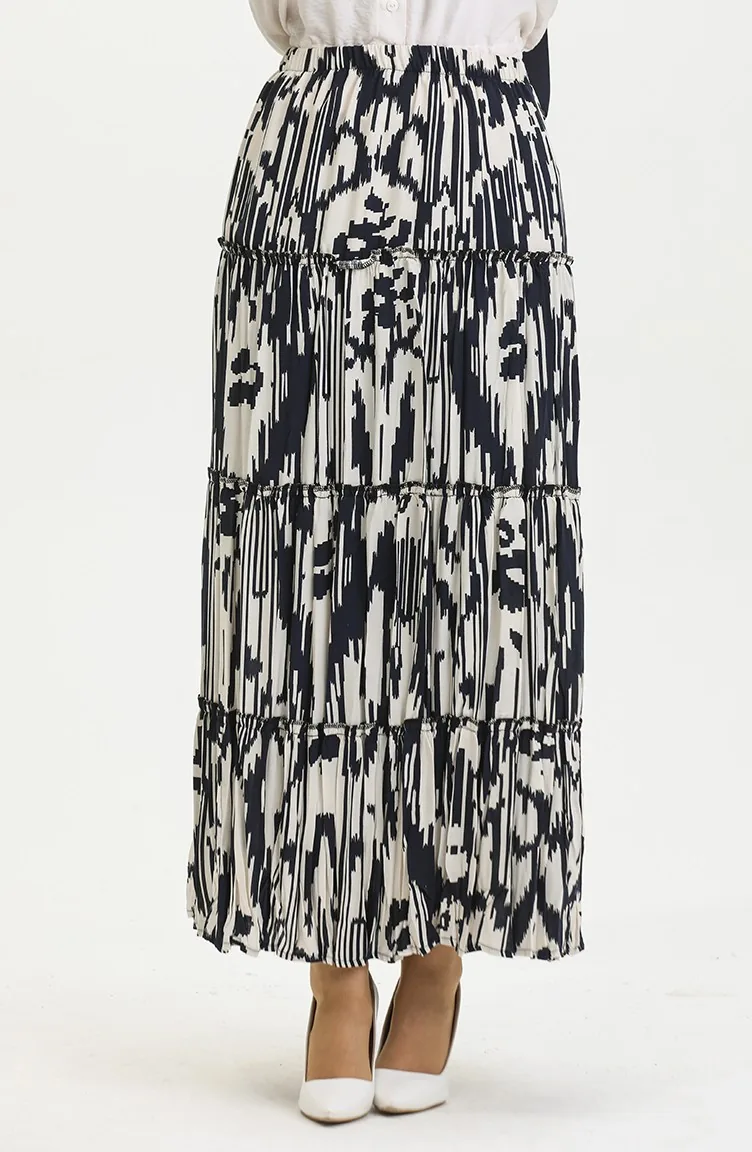 Almila Çingene Viskon Etek 3161-02 Lacivert Ekru