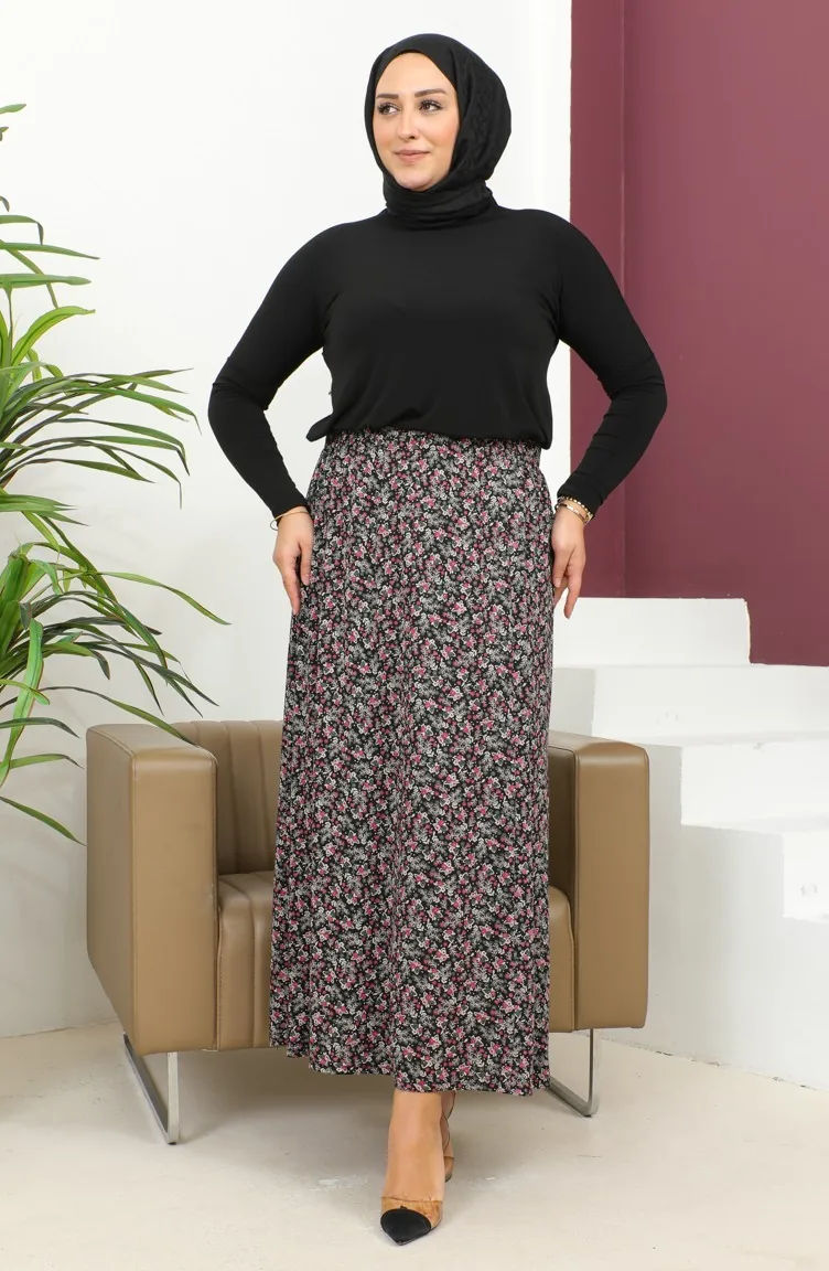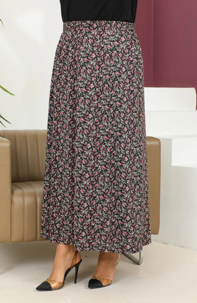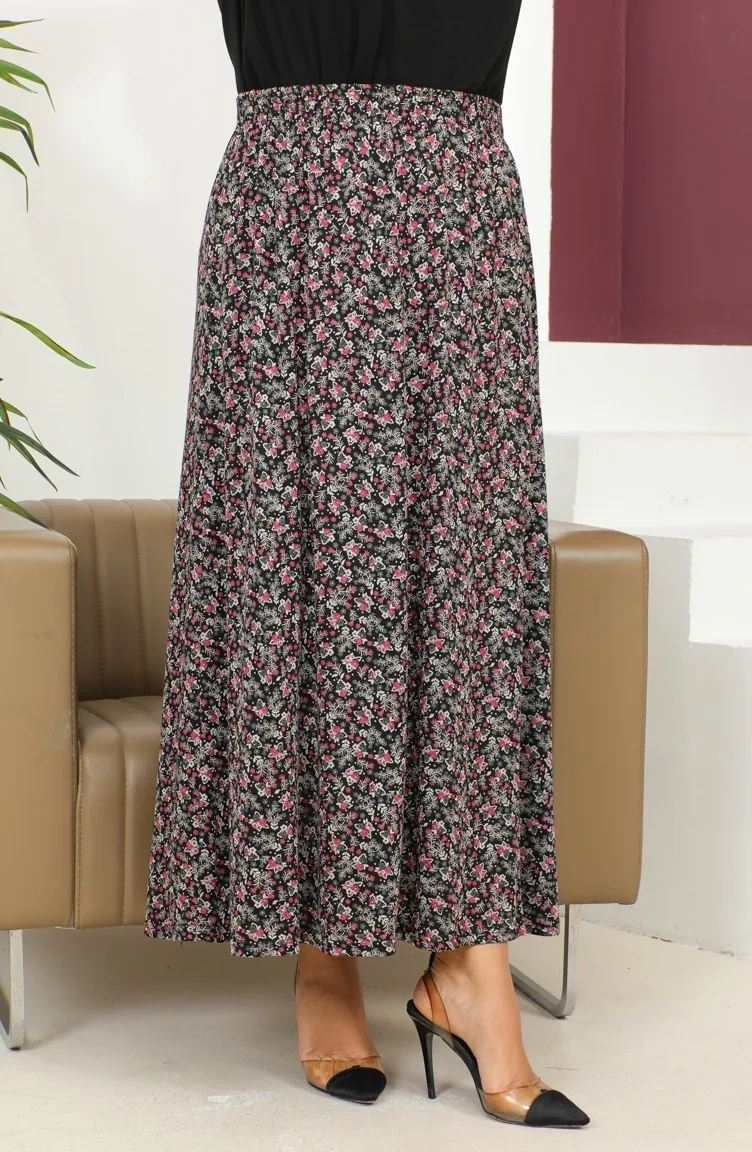 Büyük Beden Beli Lastikli Desenli Etek 2830B-03 Pembe