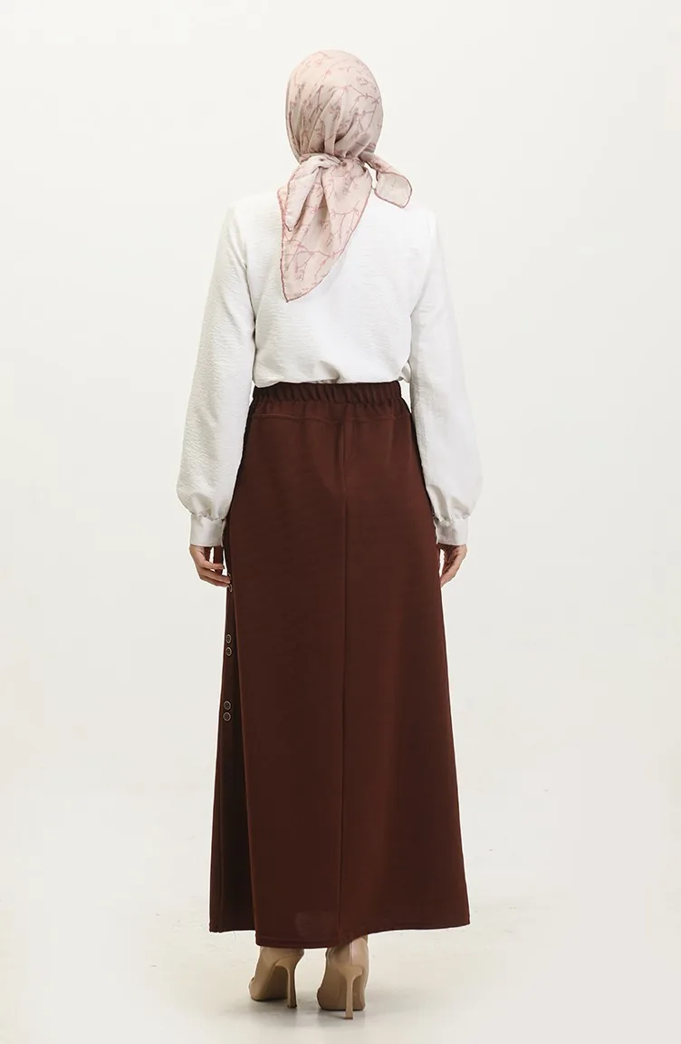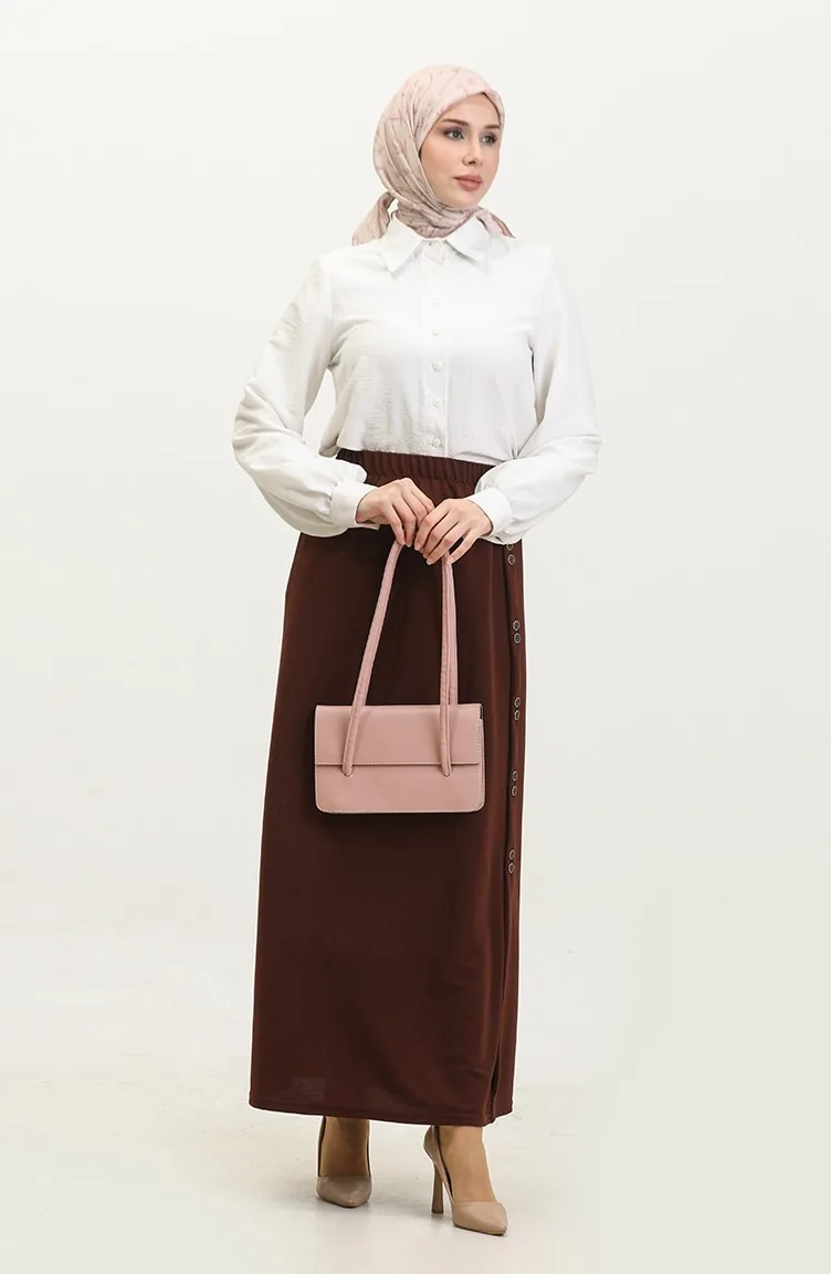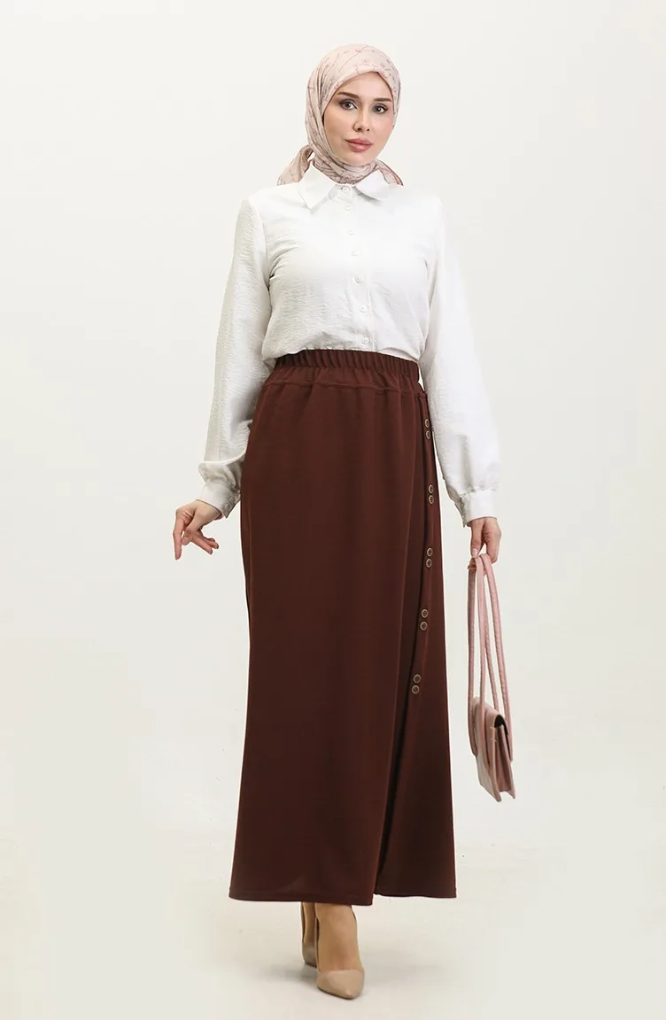Büyük Beden Düğme Detaylı Etek 4206-02 Taba