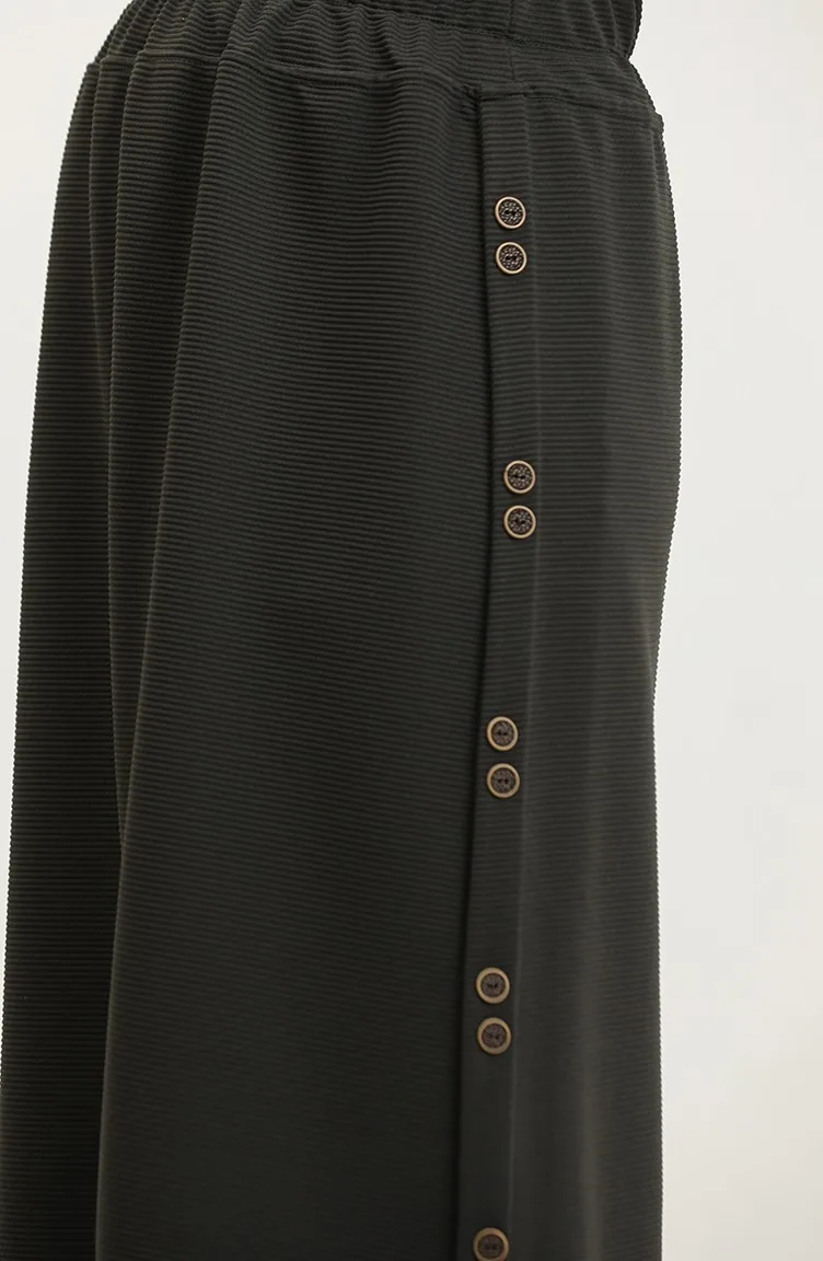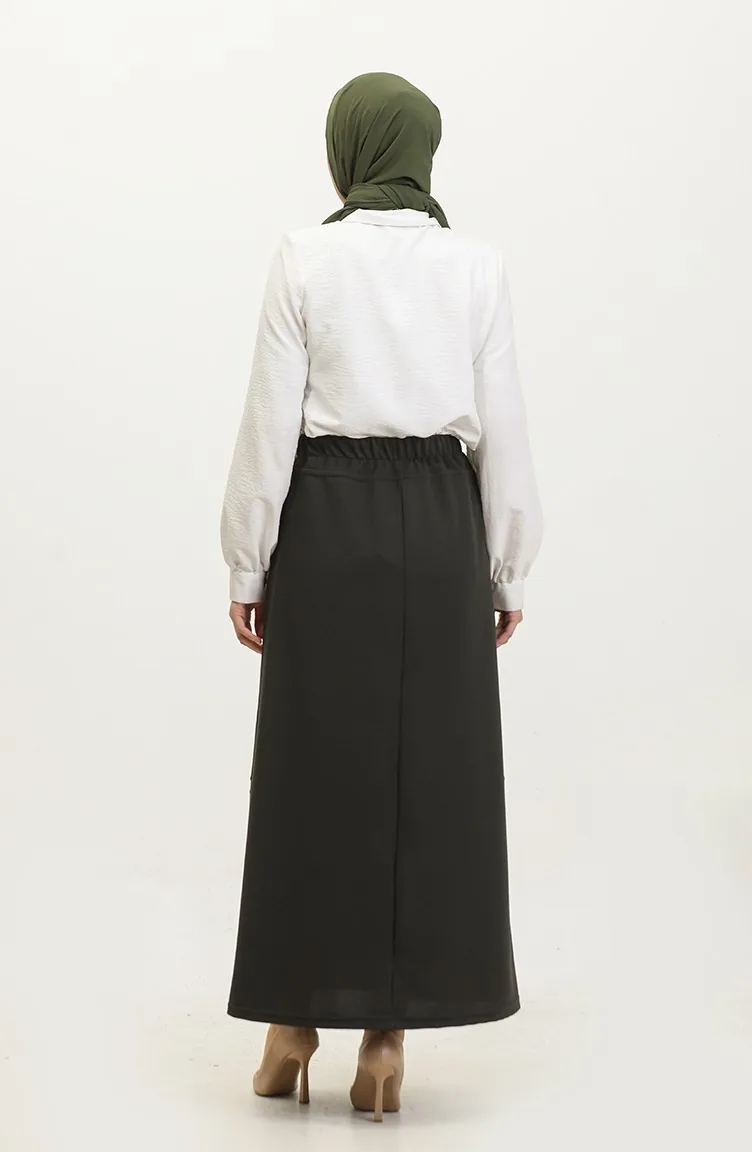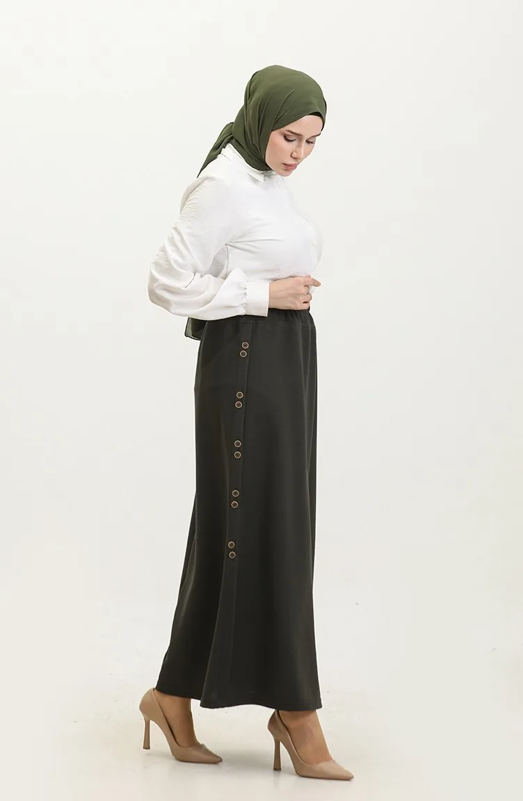 Büyük Beden Düğme Detaylı Etek 4206-05 Haki