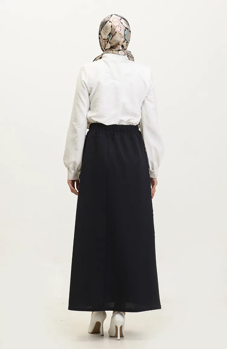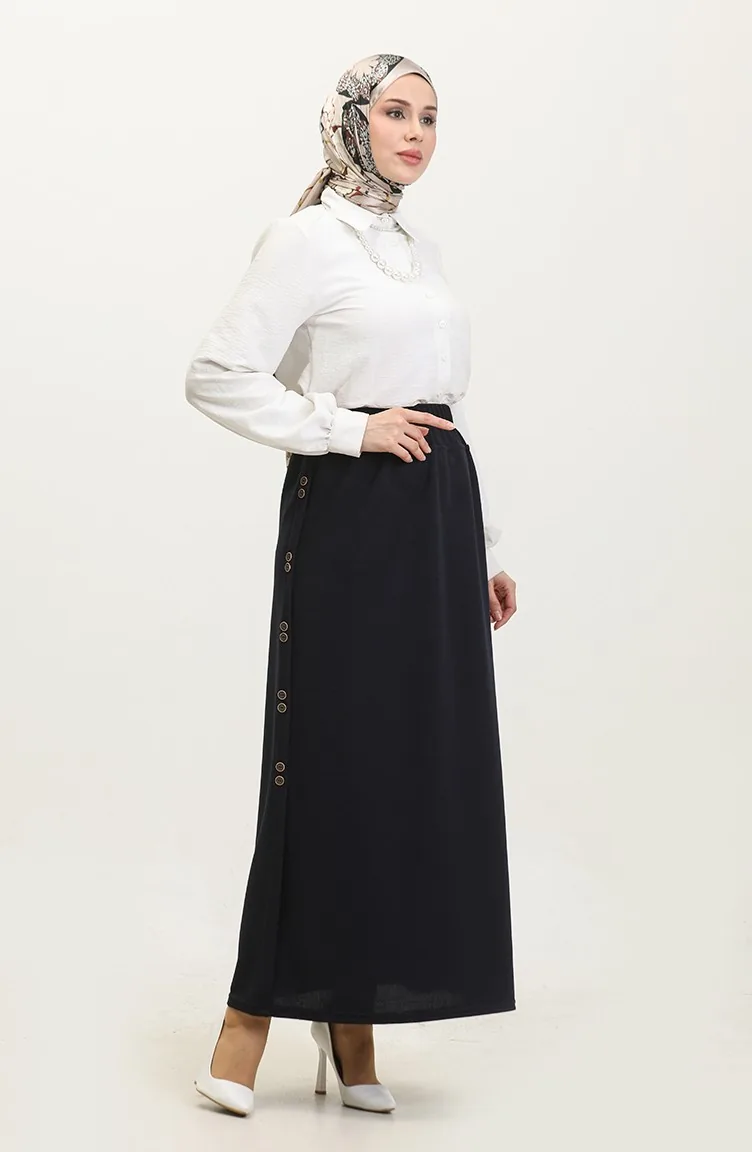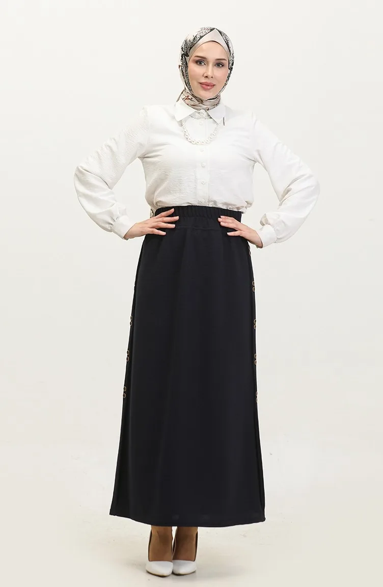 Büyük Beden Düğme Detaylı Etek 4206-07 Lacivert