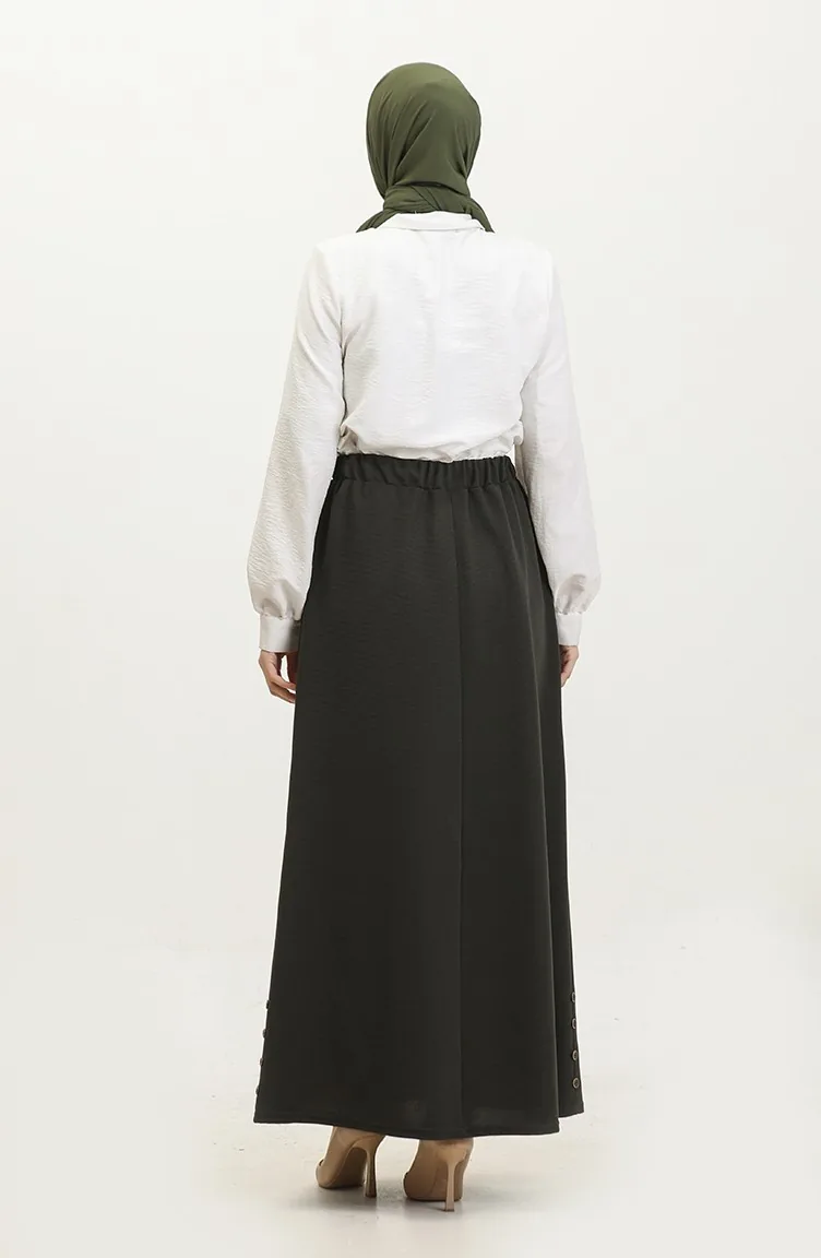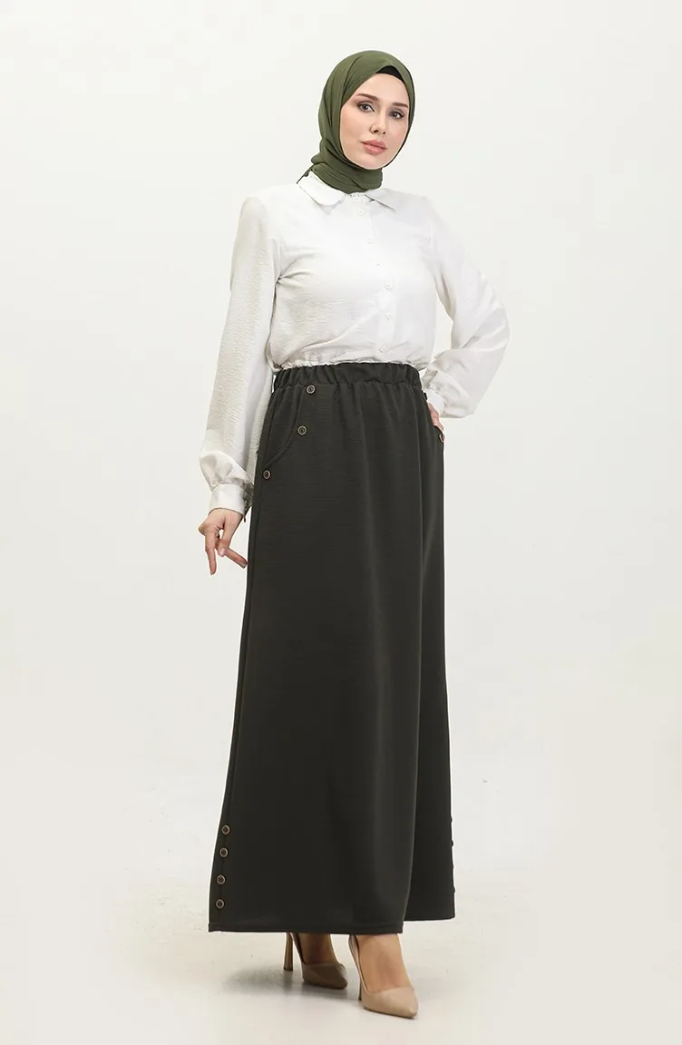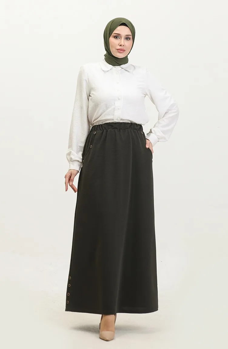 Büyük Beden Düğme Detaylı Etek 4208-06 Haki