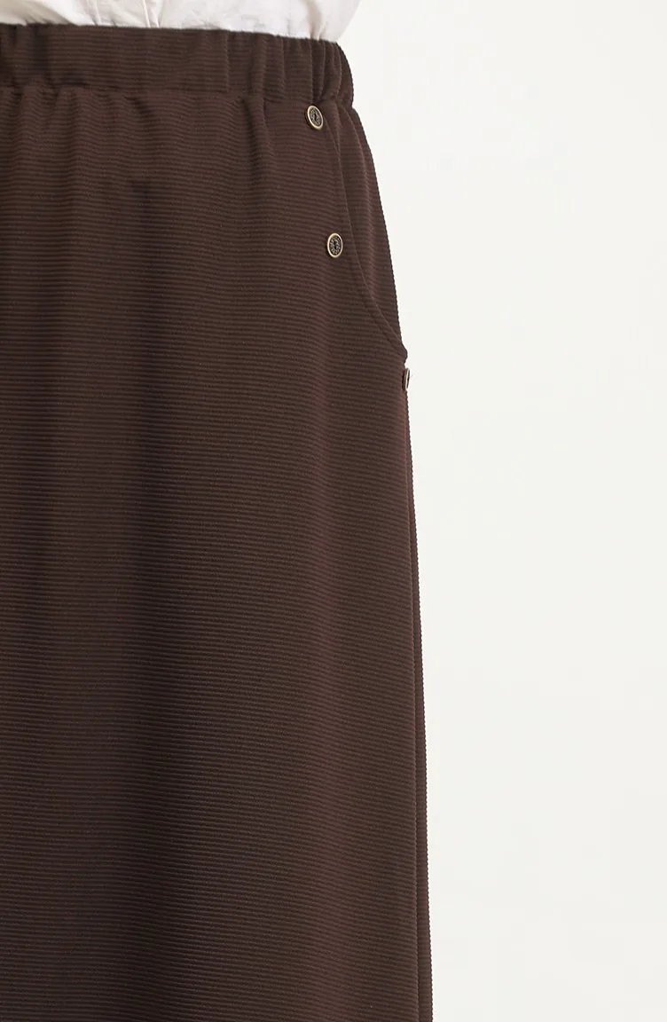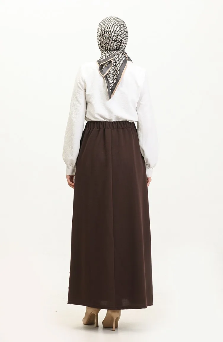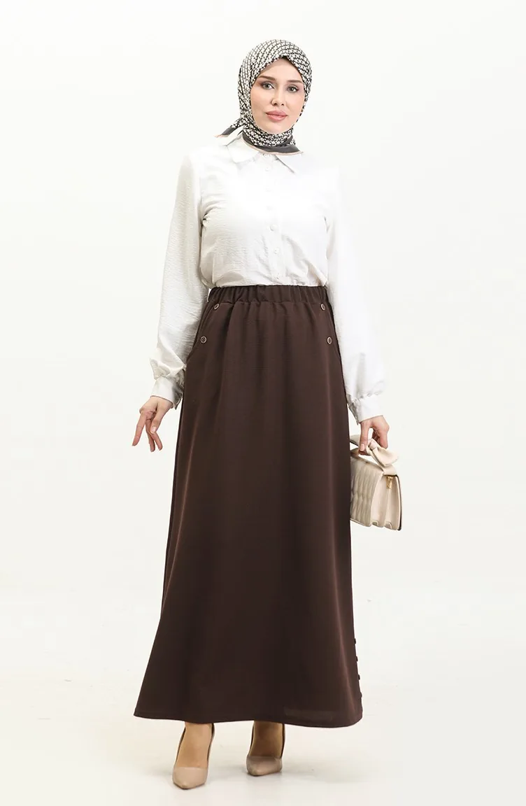 Büyük Beden Düğme Detaylı Etek 4208-07 Kahverengi