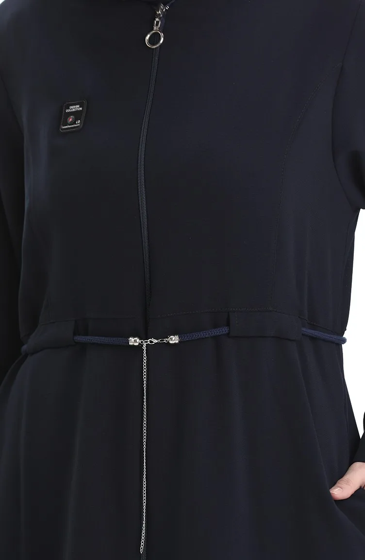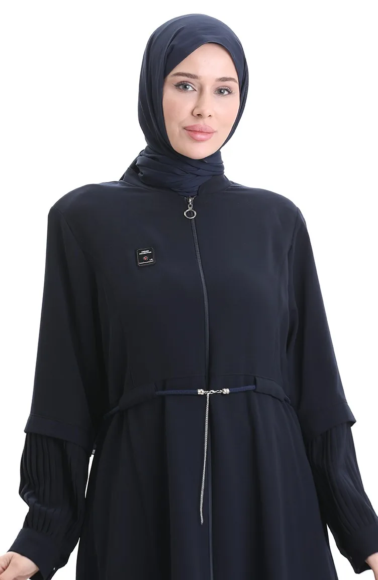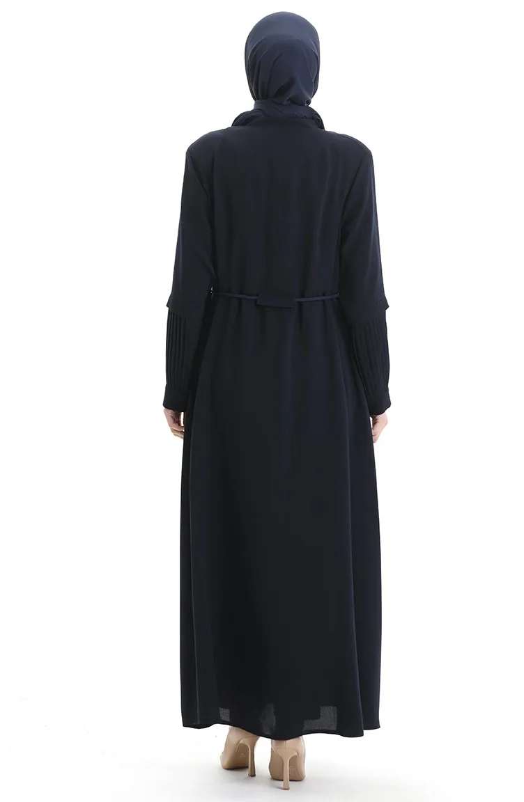 Büyük Beden Kolu Piliseli Bağcıklı Ferace 6194-03 Lacivert