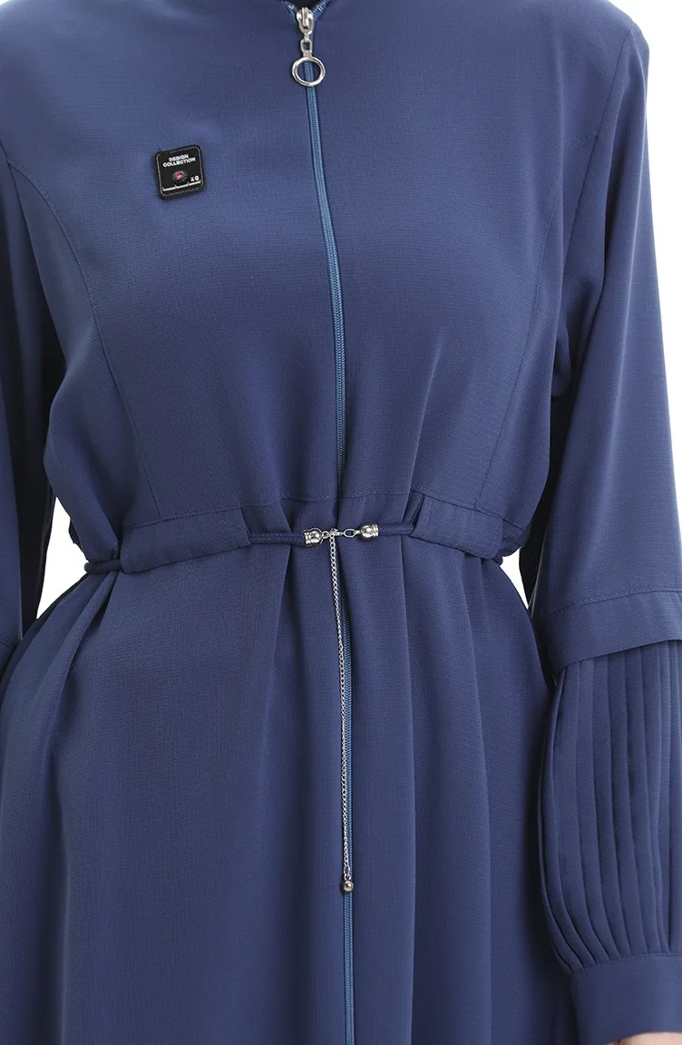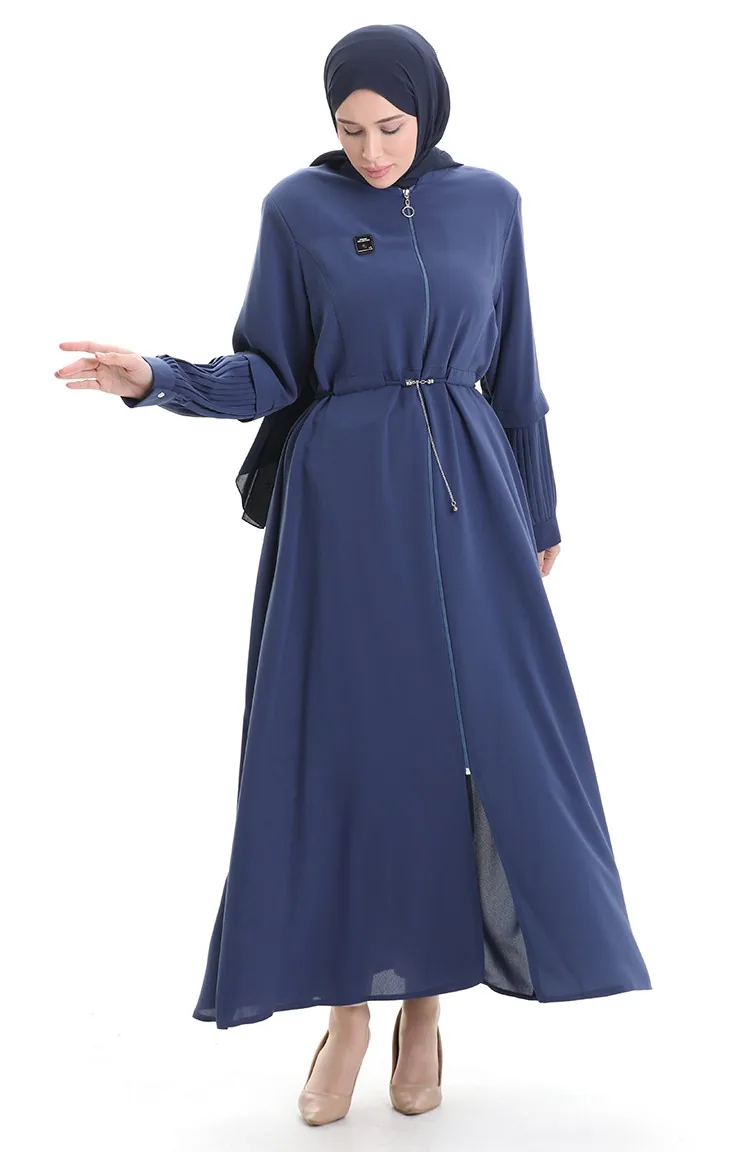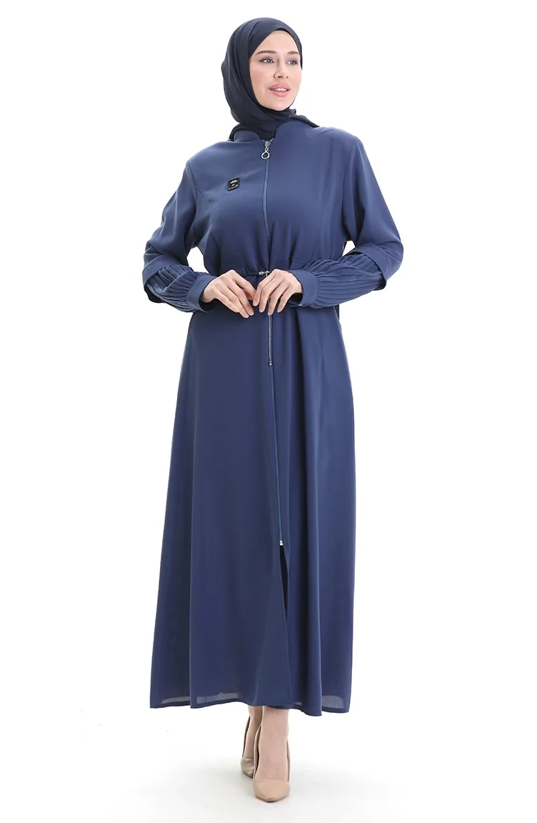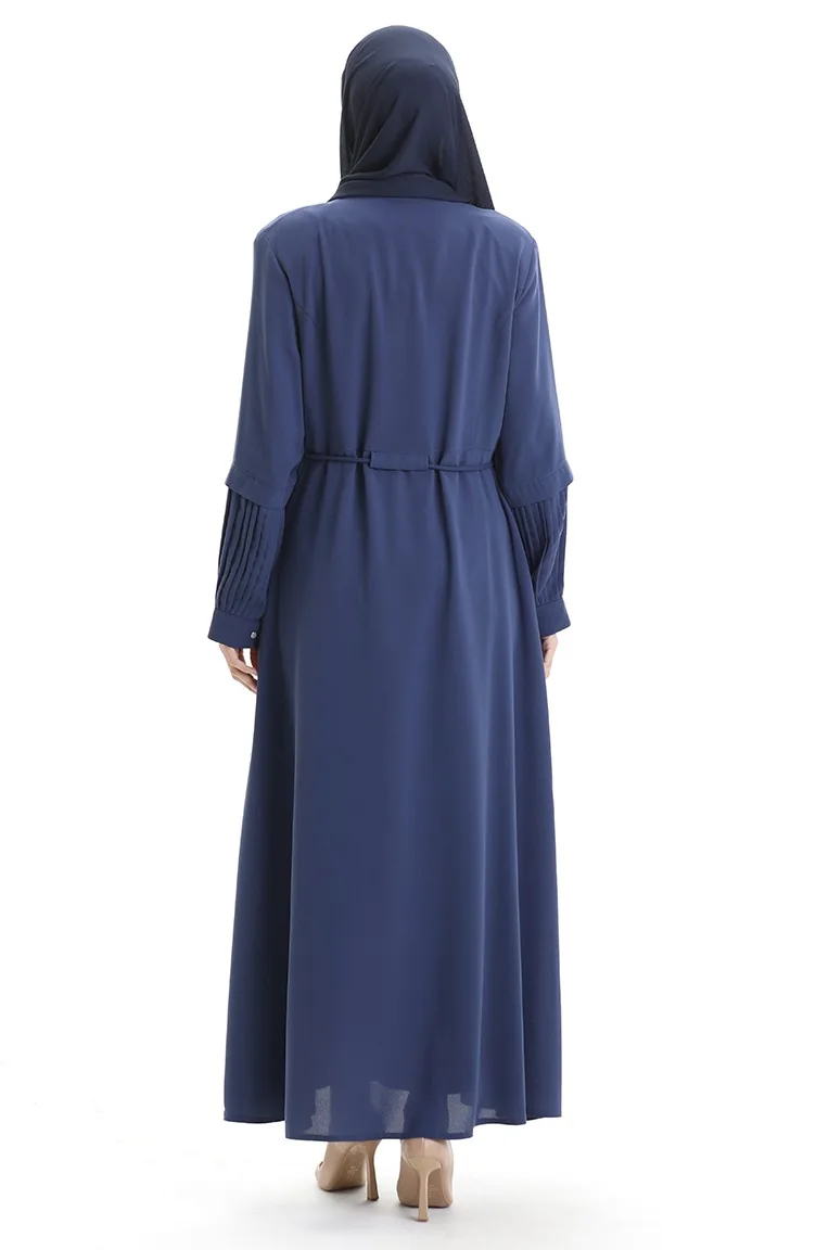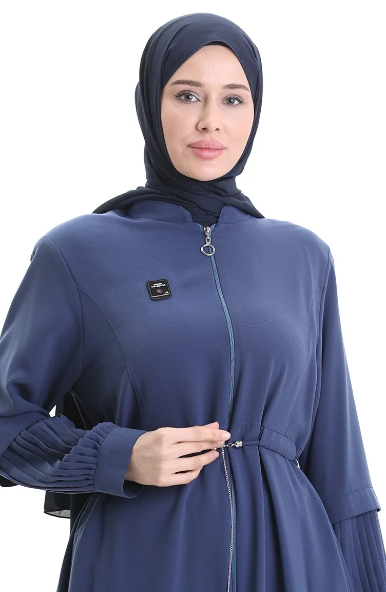 Büyük Beden Kolu Piliseli Bağcıklı Ferace 6194-04 İndigo