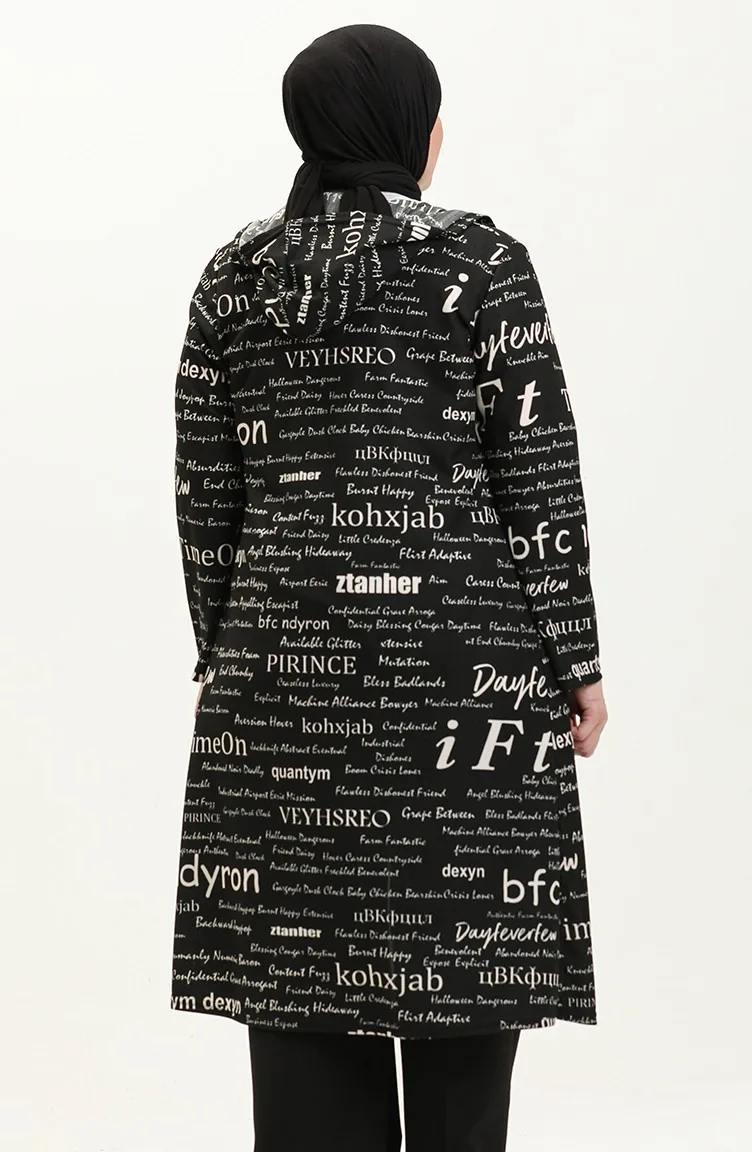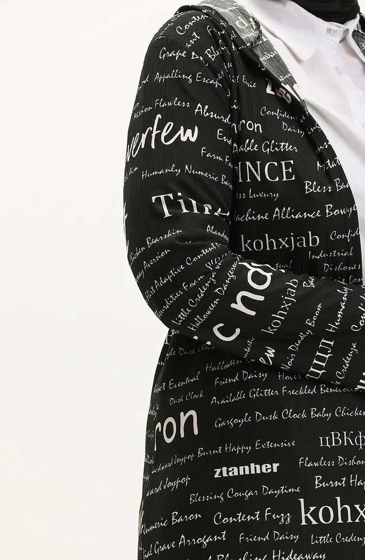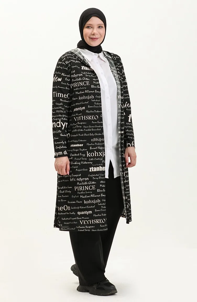 Siyah renktedir. Polyester kumaş. Desenli kumaş. Astarsız. Uzun kolludur. Mevsimlik. Büyük beden seçeneği mevcuttur.