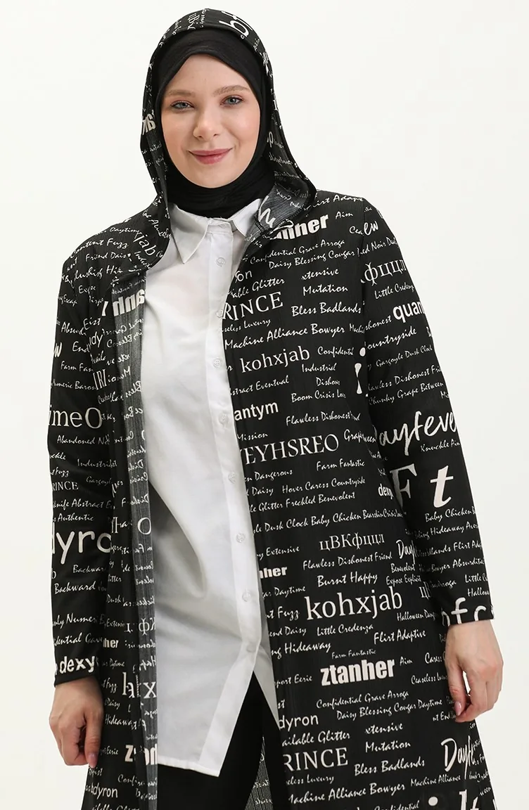 Büyük Beden Kapüşonlu Kap 4707-01 Siyah