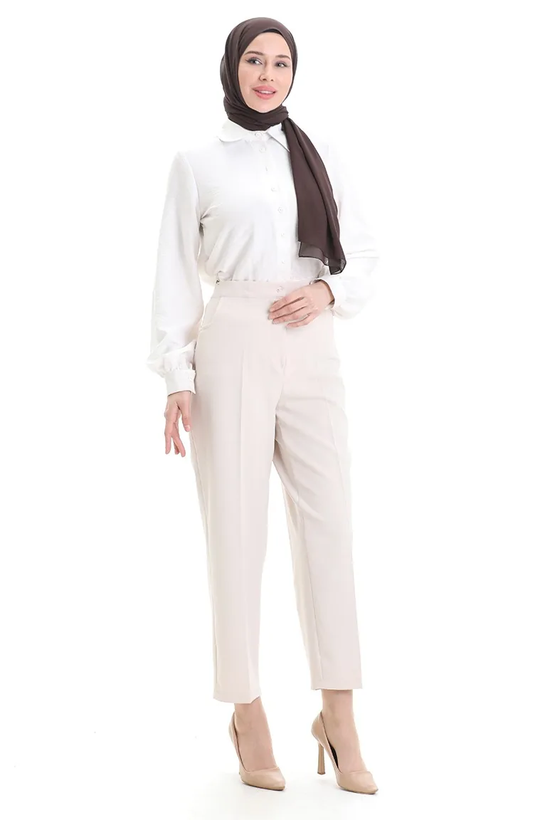 Büyük Beden Cepli Pantolon 4003-05 Bej