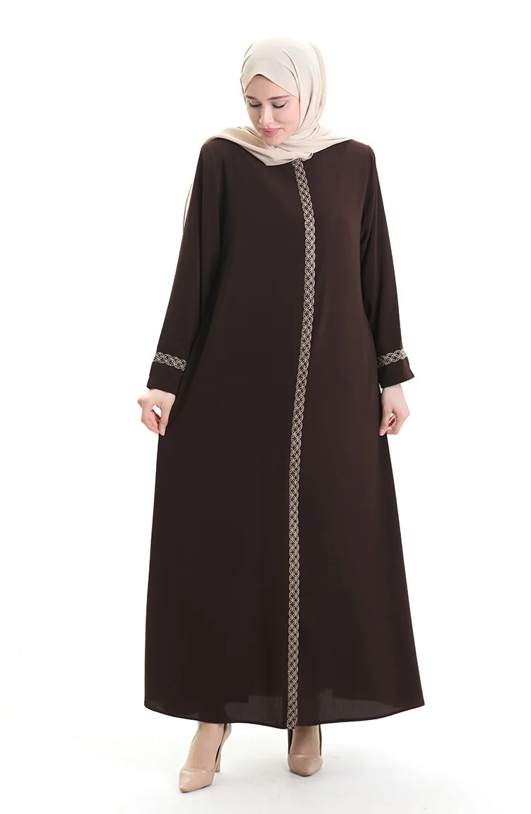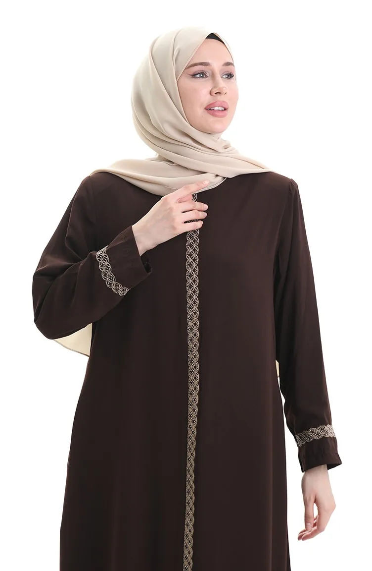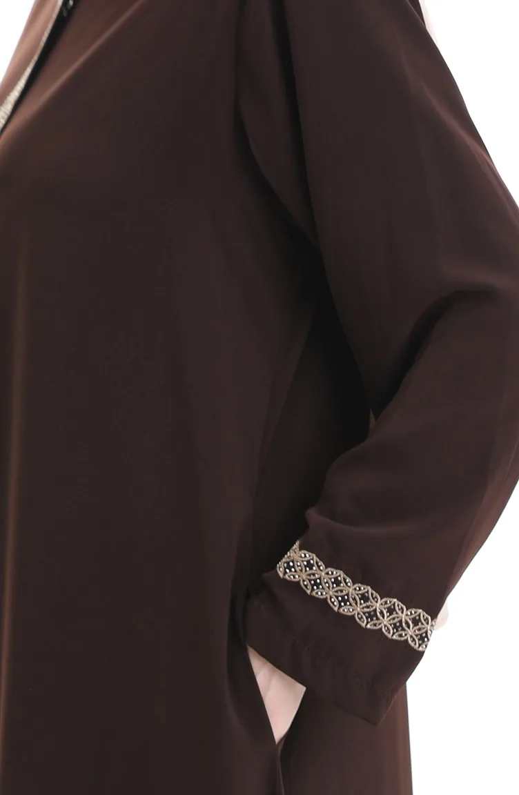 Grosse Abaya Mit Steinbestickung 5083-08 Dunkelbraun 5083-08
