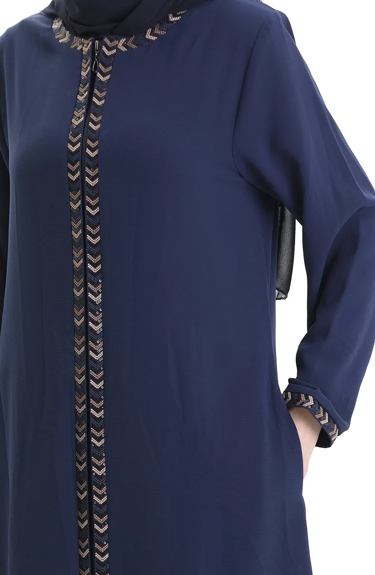 Große Größe Abaya Mit Reißverschluss Aus Wabenstoff 6183-04 Parlament 6183-04