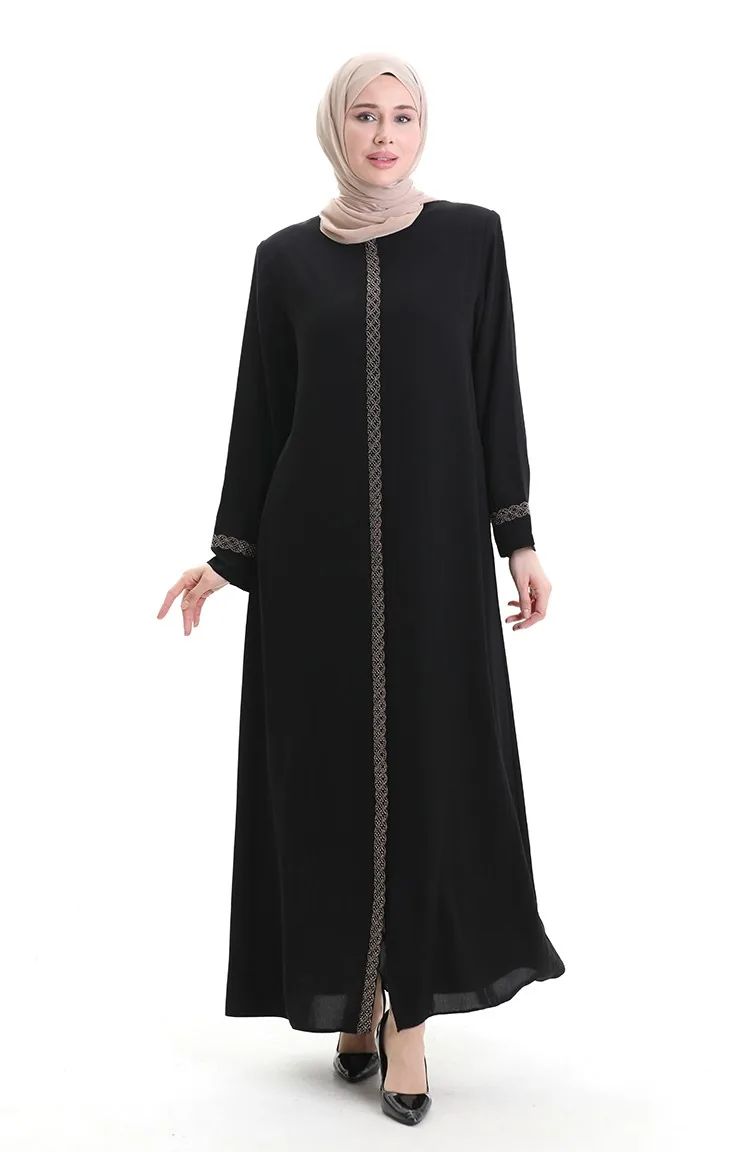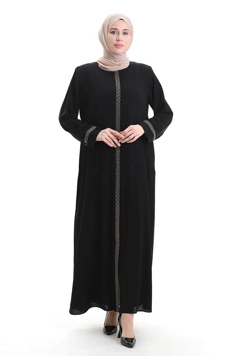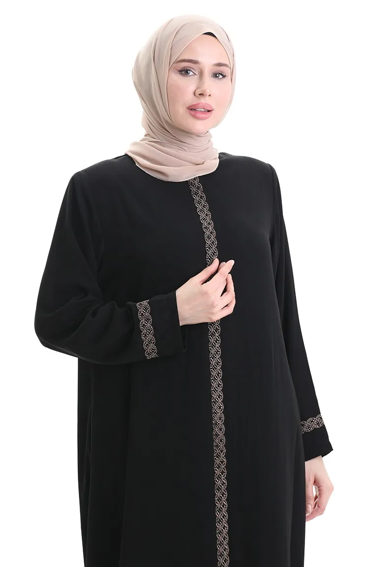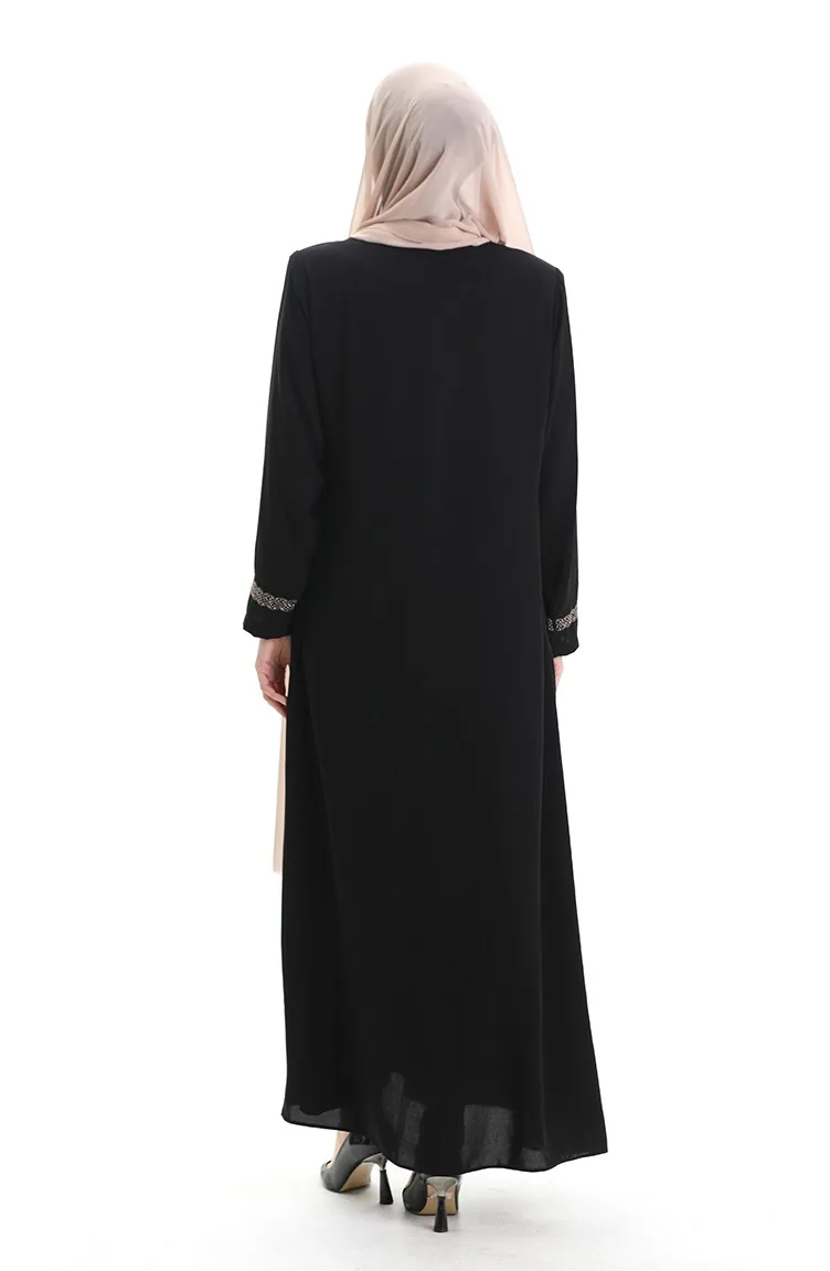 Übergröße Abaya Mit Steinstickerei 5083-01 Schwarz 5083-01