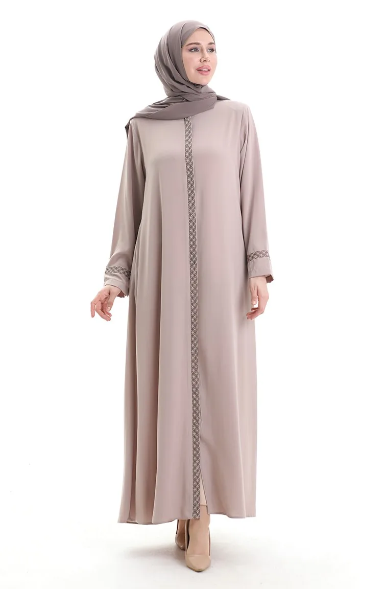 Übergröße Abaya Mit Steinstickerei 5083-07 Nerz 5083-07