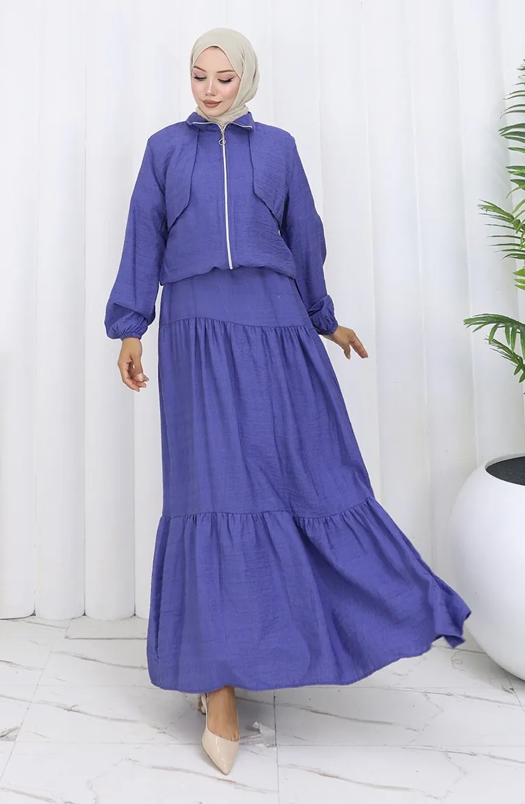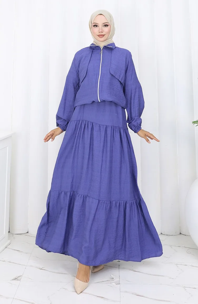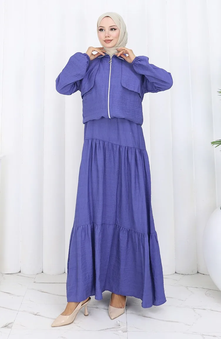 Zweiteiliger Anzug Mit Elastischen Ärmeln Und Reißverschluss 0129-21 Lila 0129-21