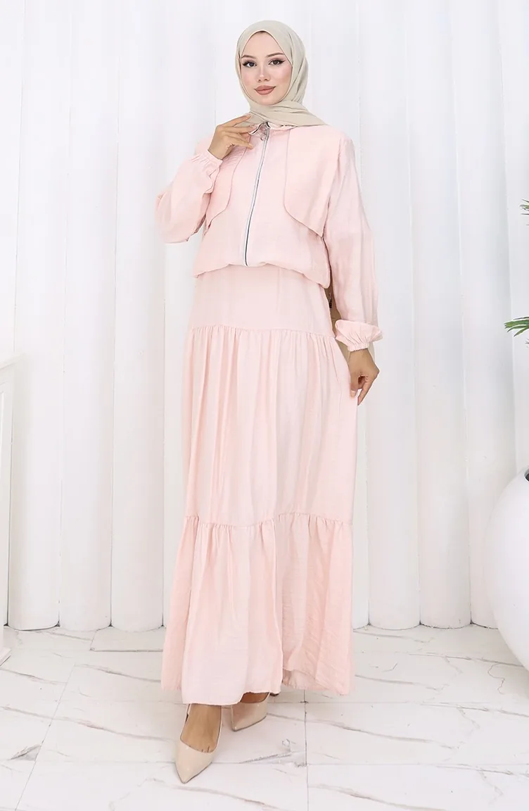 Zweiteiliger Anzug Mit Elastischen Ärmeln Und Reißverschluss 0129-24 Staubrosa 0129-24