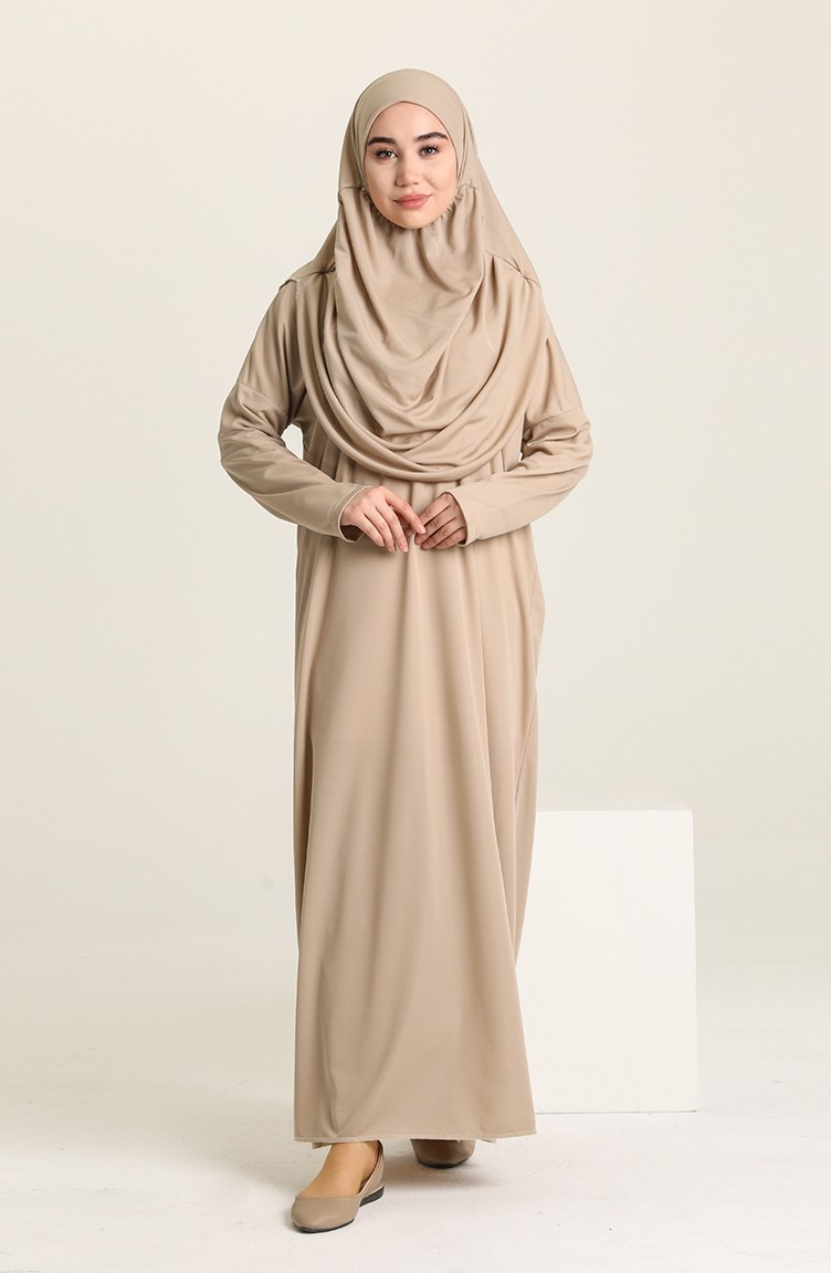 Dışarıda namaz kılmak için gayet rahat ve kullanışlı. Yorumlara bakarak bone de aldım. Hiçbir sorun yaşamıyorum. Kıyafetin üstüne giyilecek bir namaz elbisesi.