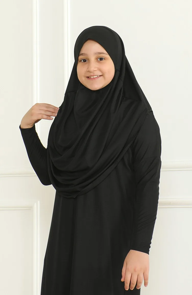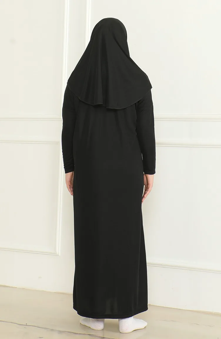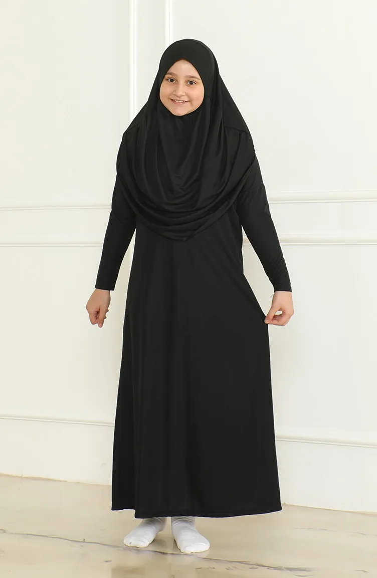 Einteiliges Praktisches Kinder-Gebetskleid Mit Kopftuch 1985-01 Schwarz 1985-01