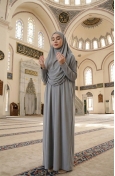 Dışarıda namaz kılmak için gayet rahat ve kullanışlı. Yorumlara bakarak bone de aldım. Hiçbir sorun yaşamıyorum. Kıyafetin üstüne giyilecek bir namaz elbisesi.